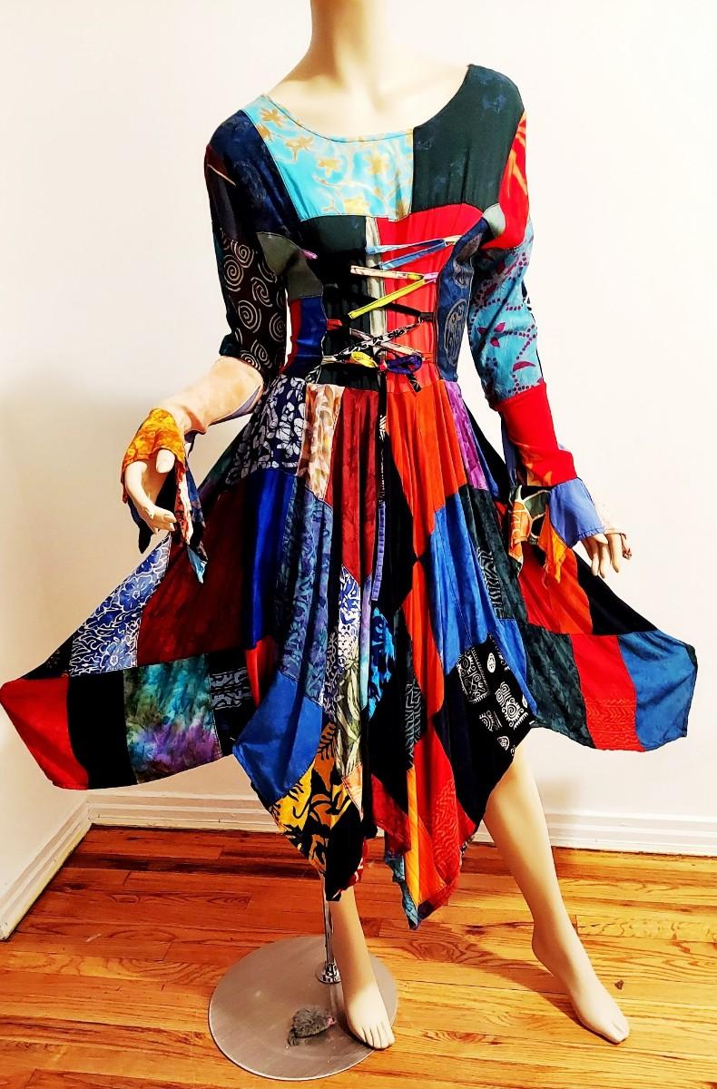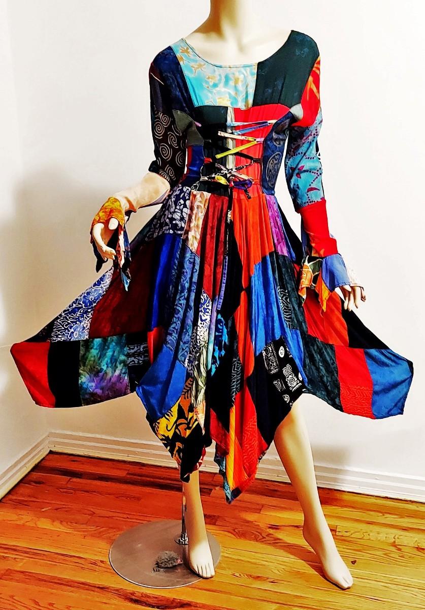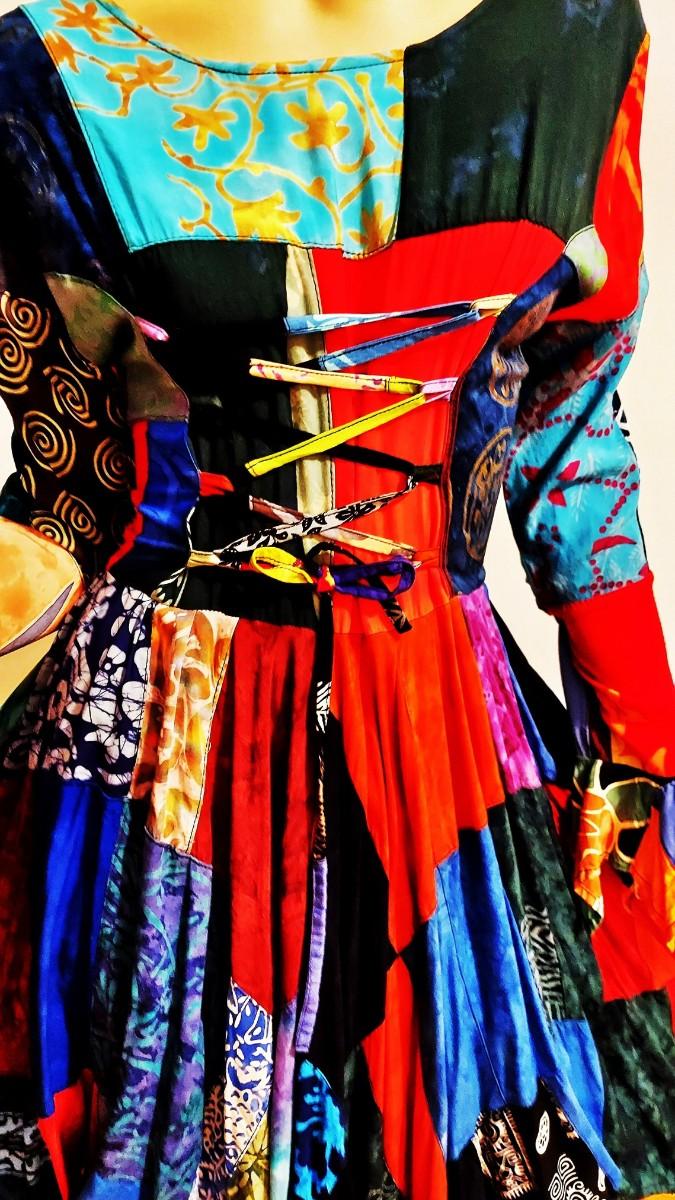 A magnificent Boho Chic Handkerchief Dress Patchwork Tie back