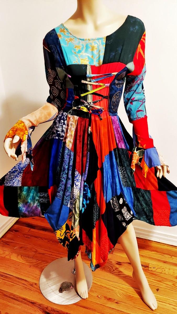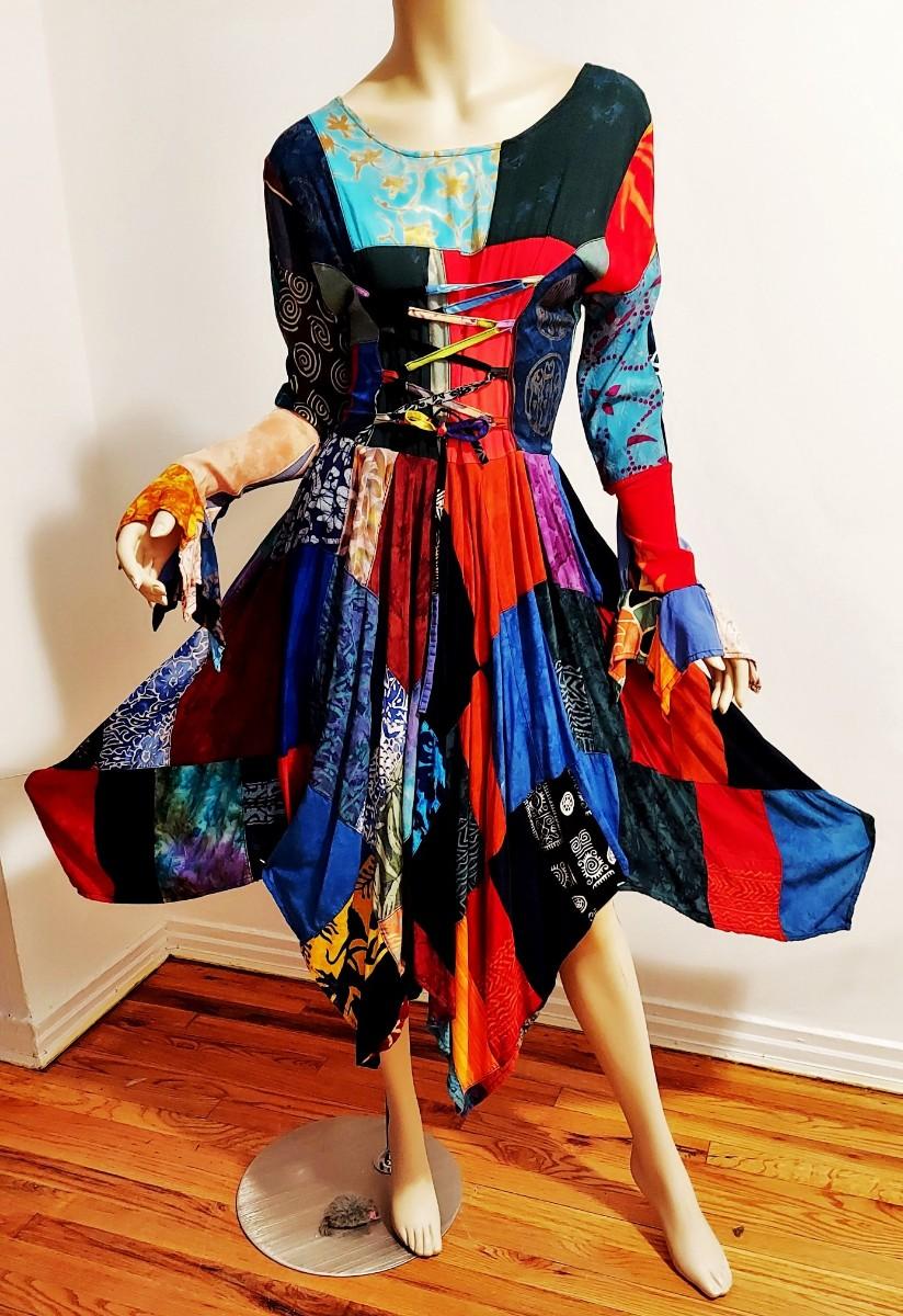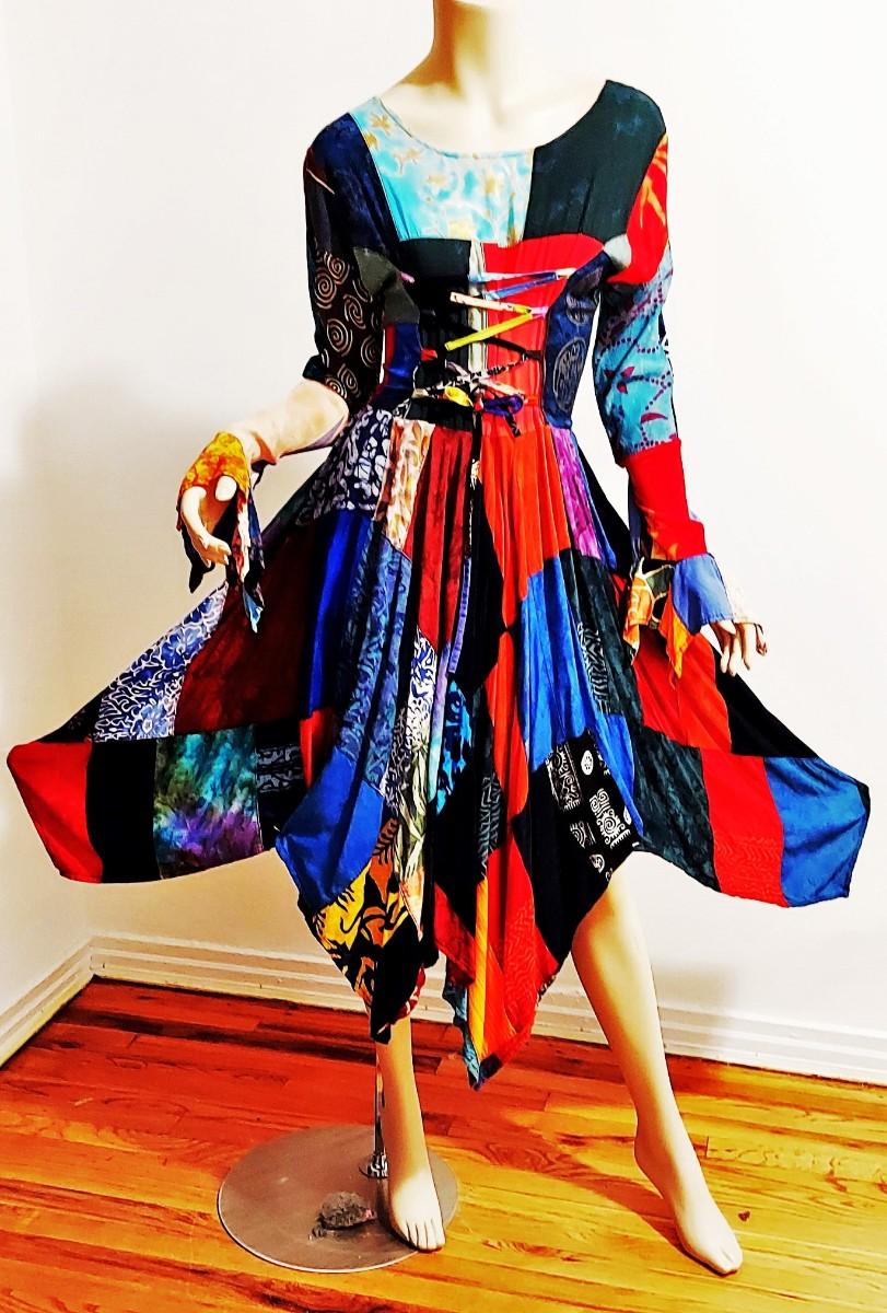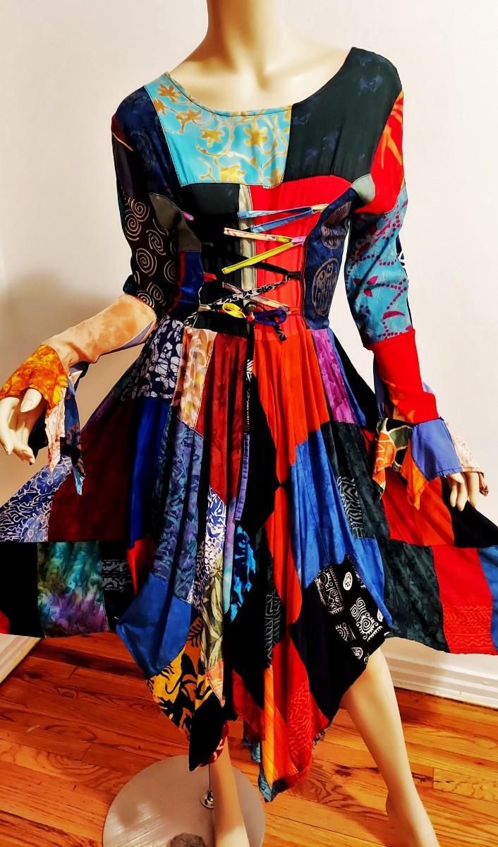 A magnificent Boho Chic Handkerchief Dress Patchwork Tie back