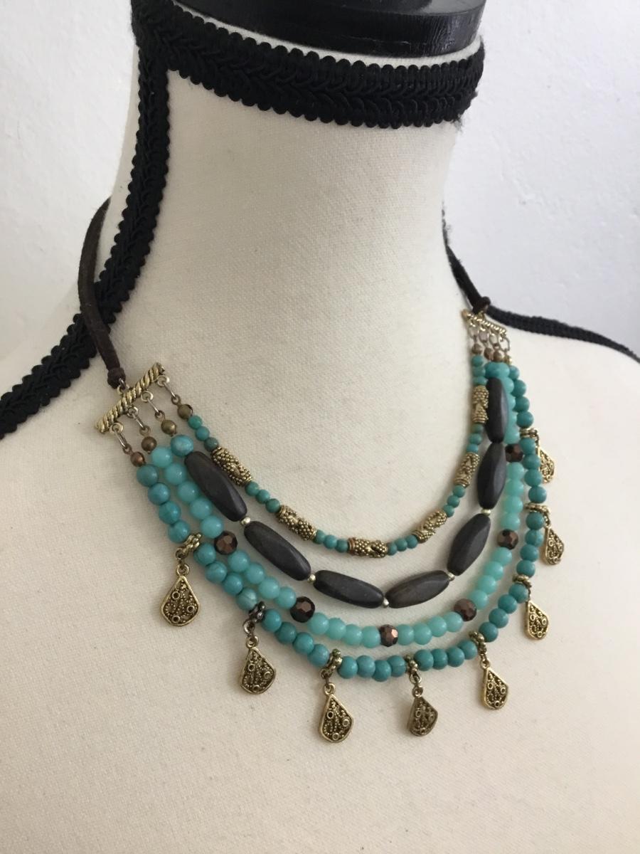 BoHo style southwestern style suede leather choker style necklace