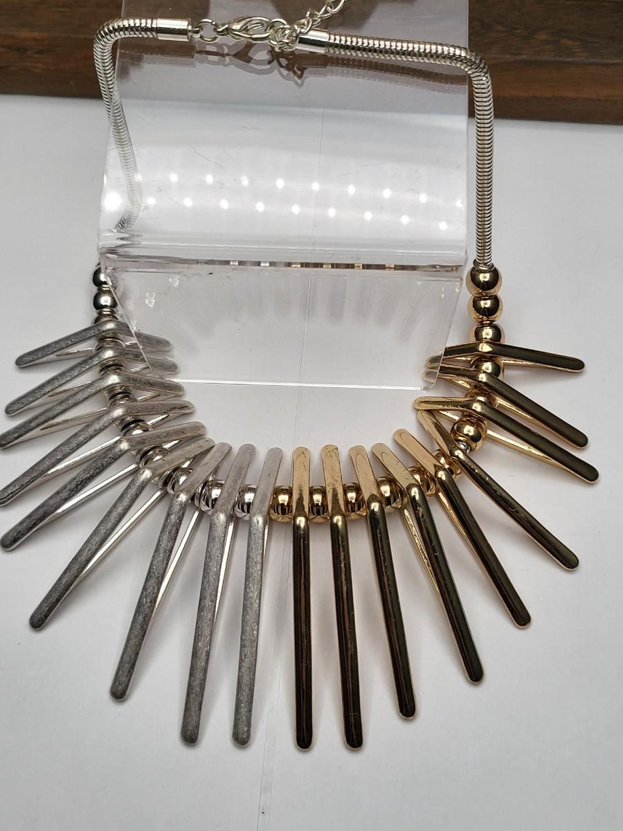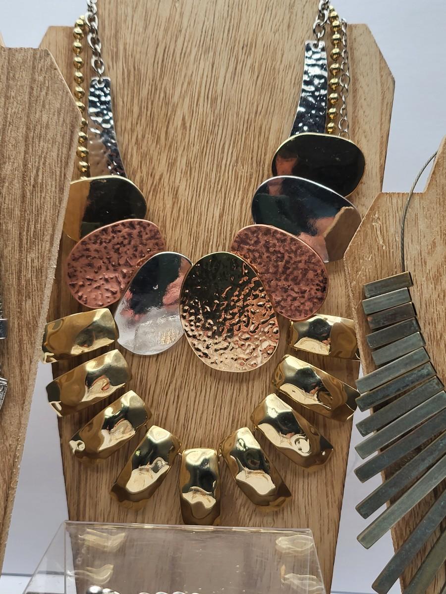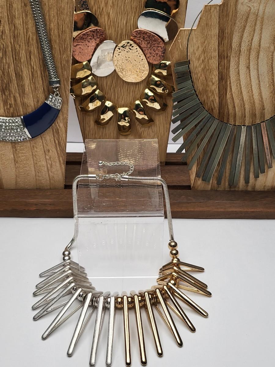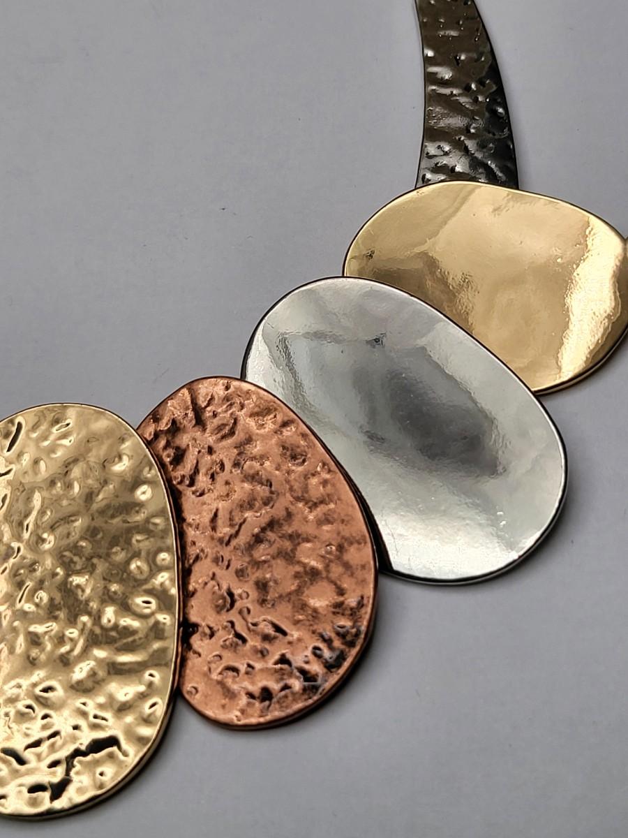 Six various bold, statement necklaces. Enamel, rhinestones, silver tone, gold tone, copper & bronze tone. 14" to 18" lengths with extenders.