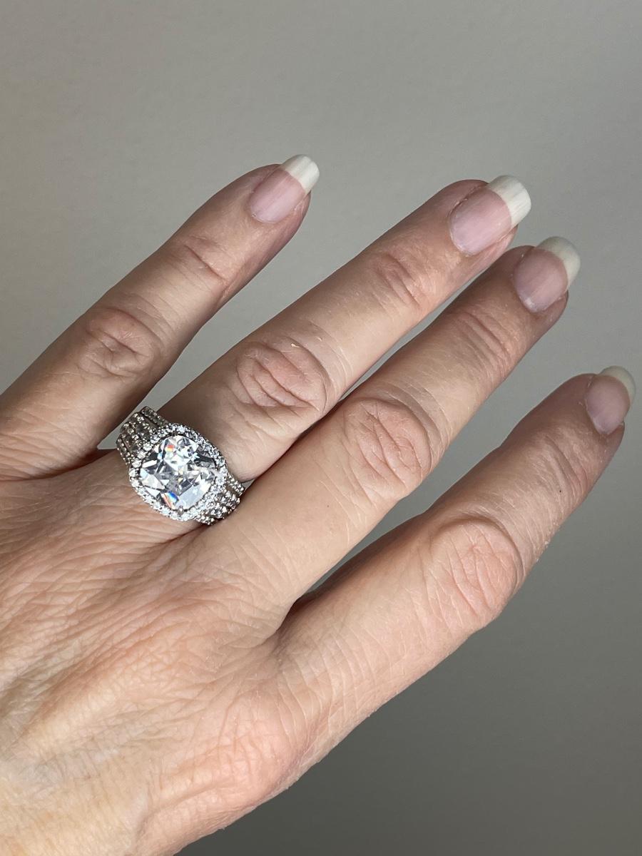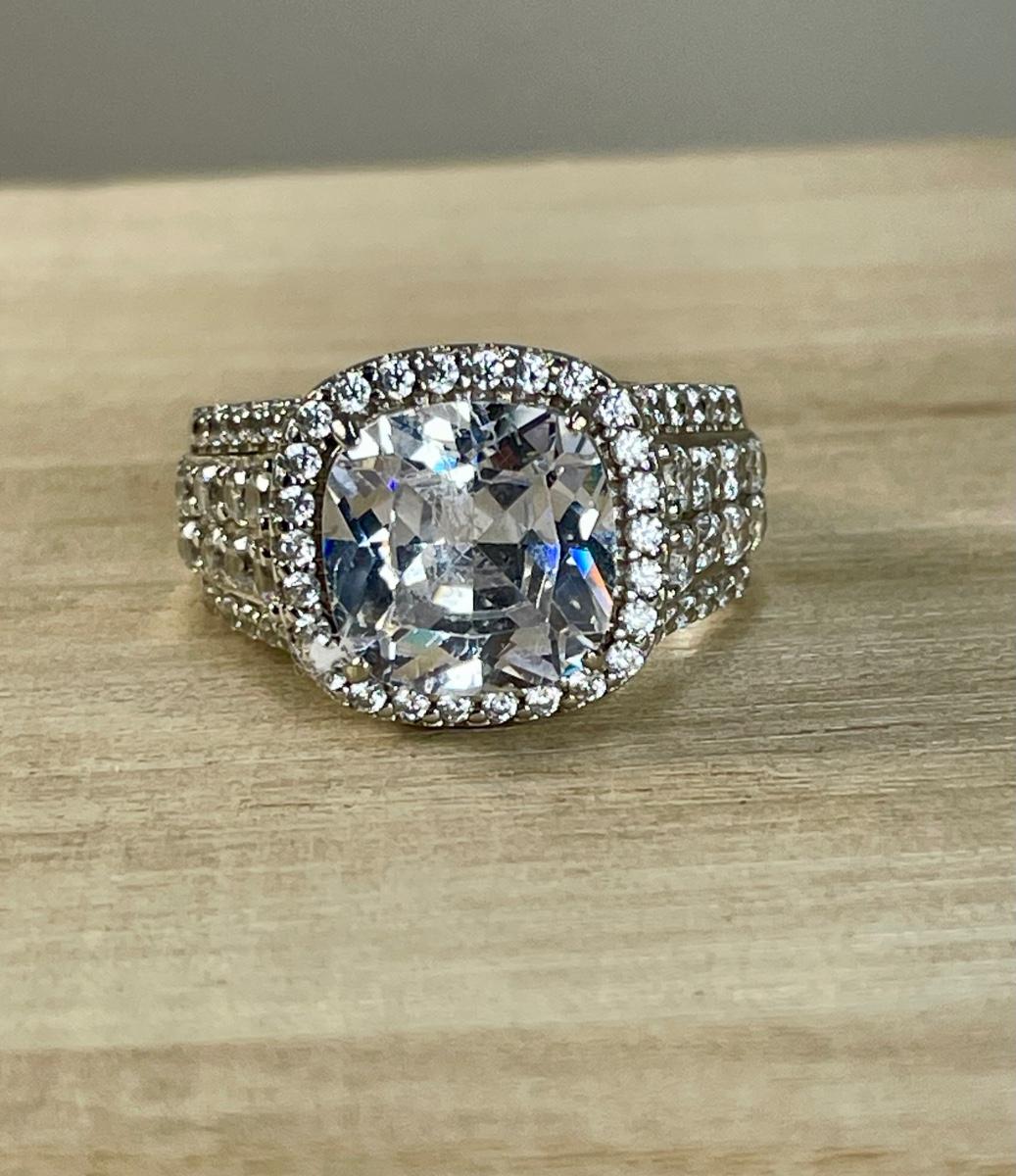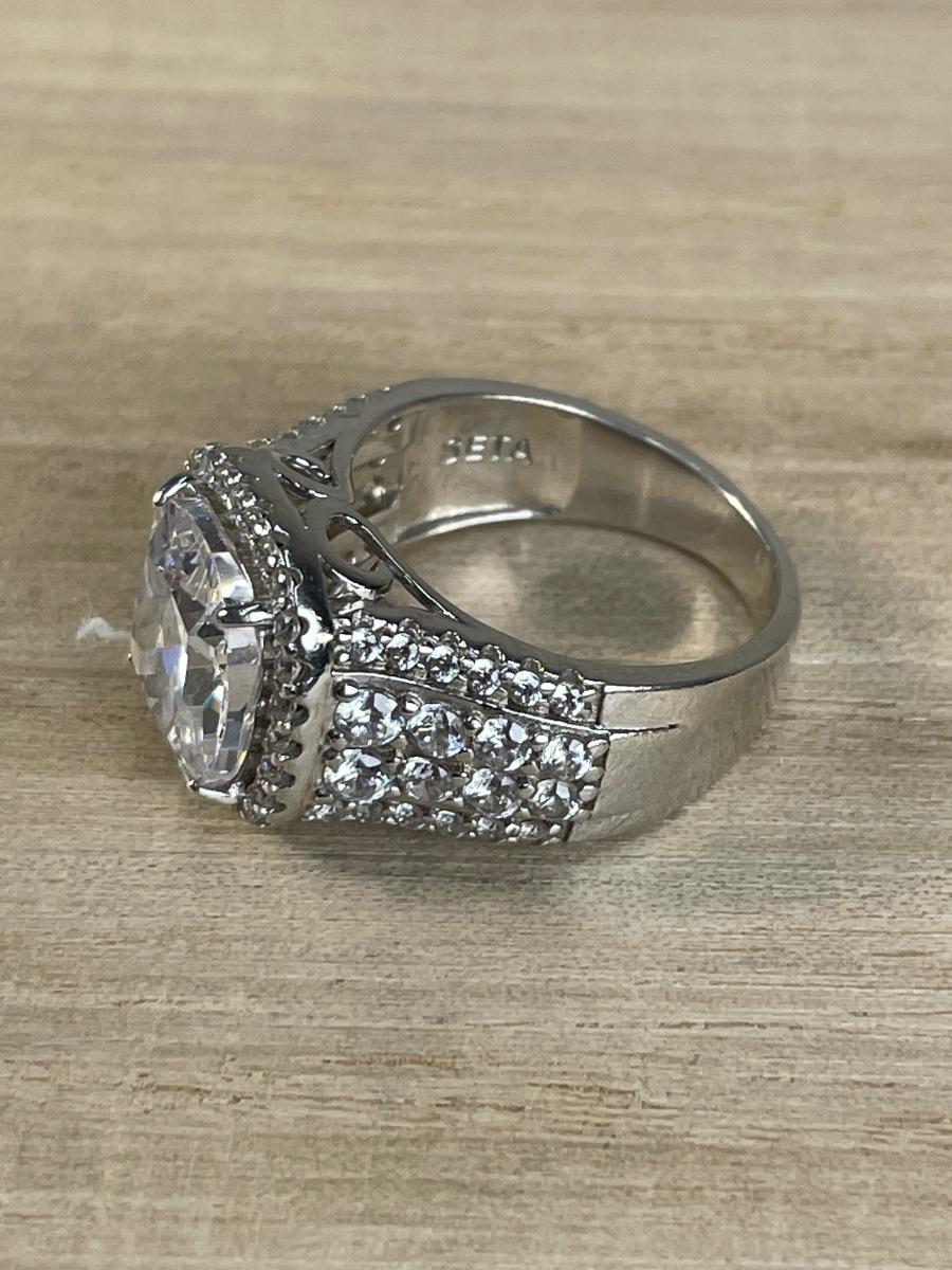 Bold CZ Halo Sterling Silver Ring 7