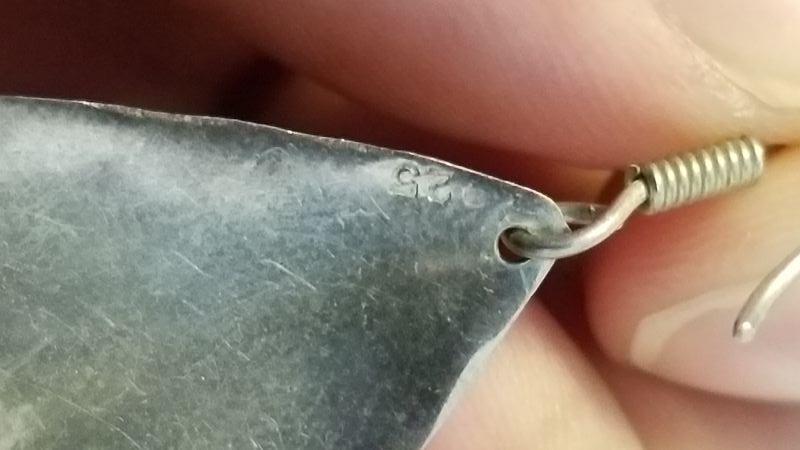 These adorable large dangle earings are fun and exciting. I only saw 925 marked on one of the earings body (see photos), and I did not see any marks of the wire part that would go through your ear. It potentially can not be sterling, so you may need to swap them out. Priced accordingly.