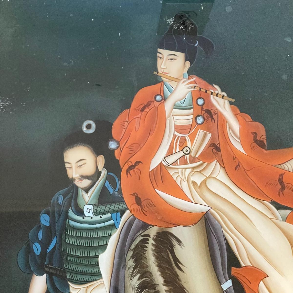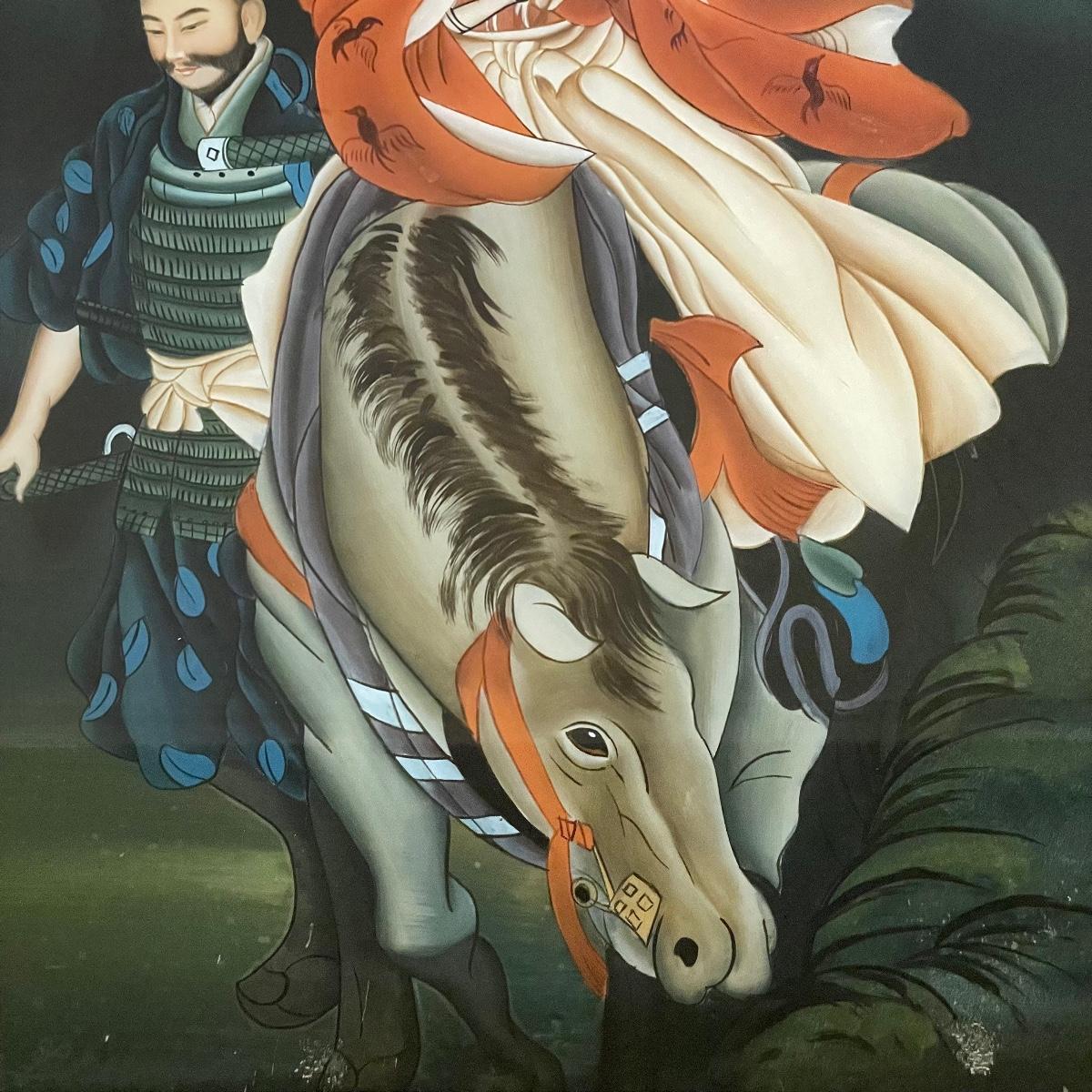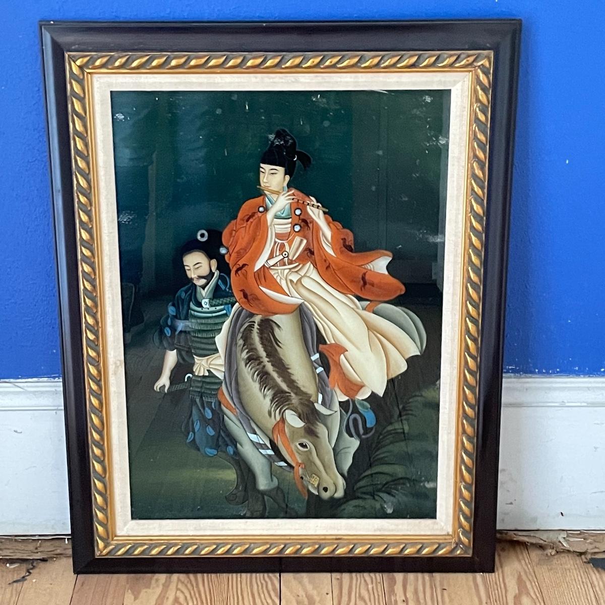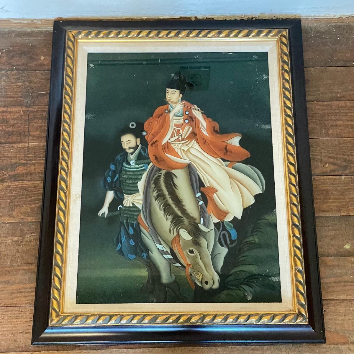 Japanese Reversed Glass Painting, A Samurai and his Partner on a Horse  (UB3 - SS)