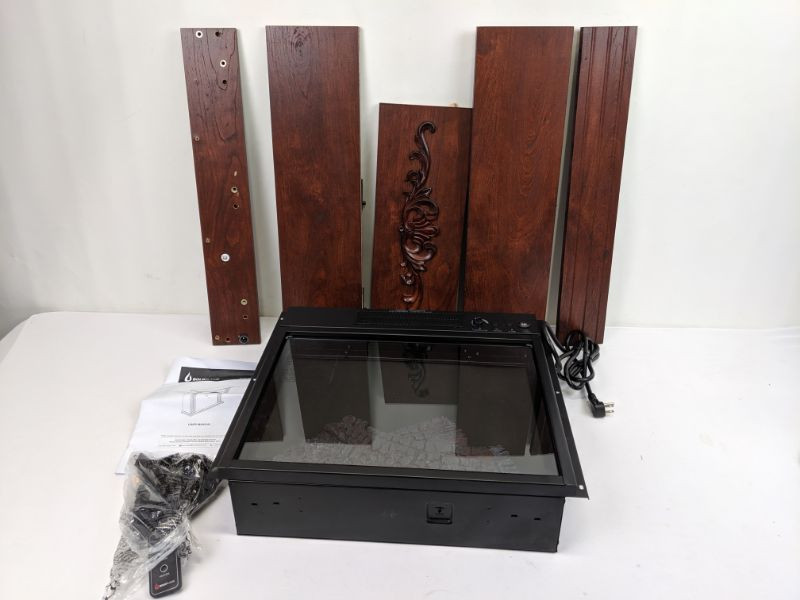 Bold Flame 28 inch Electric Fireplace Heater, Chestnut - Heater Works Like New - Outside Mantel Is Missing Tip & Bottom