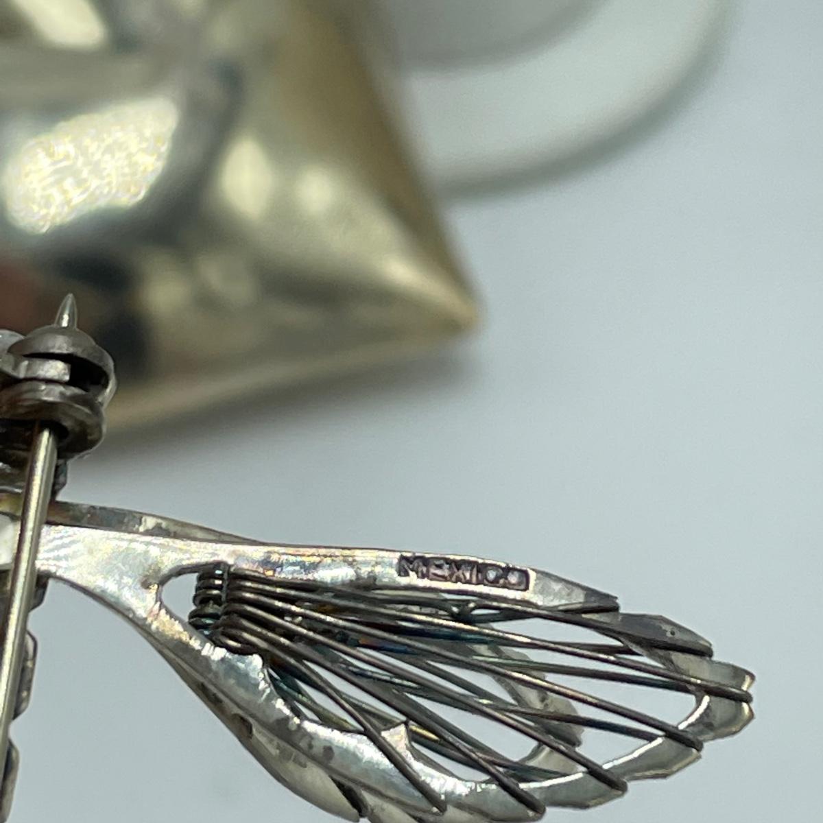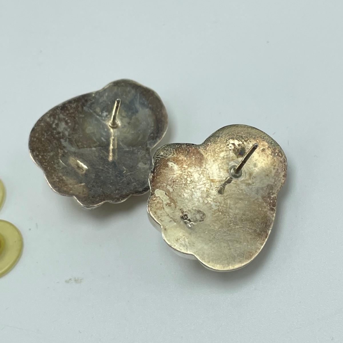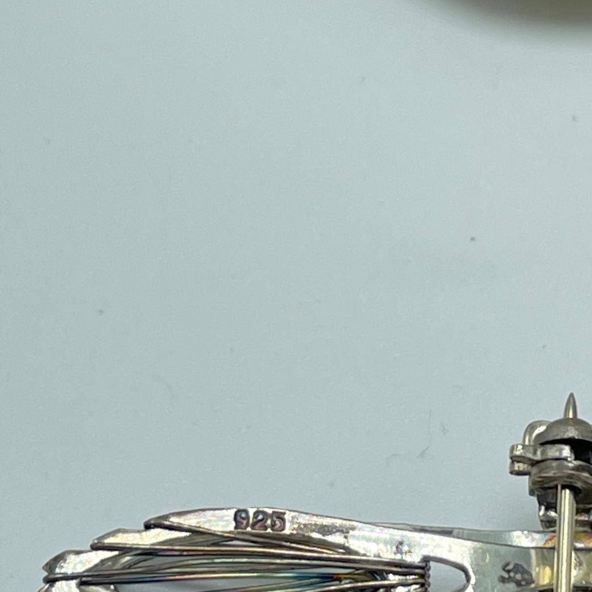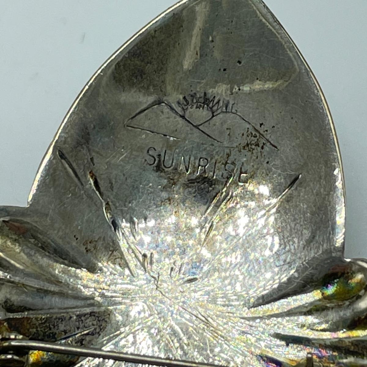 One hollow heart shaped pendant, two brooches and a pair of posted earrings all marked sterling or 925. Each one offers a bold statement with their unique designs. The sterling marking on the brooch with the onyx colored stone is hidden a bit in the sun’s rays of the Sunrise stamp. See images. Shipping available.