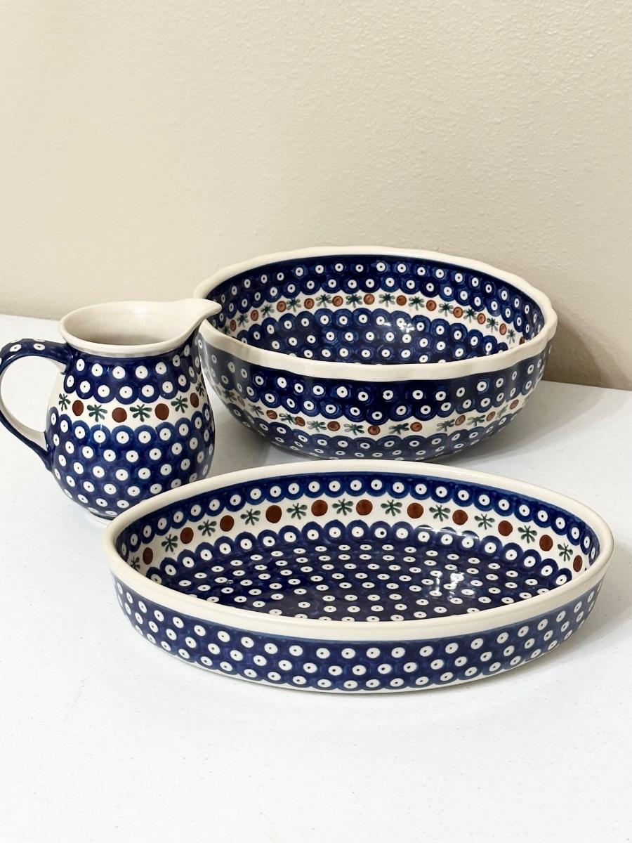BOLESLAWIEC ~Three (3) Piece Blue Rose Set ~ POLAND