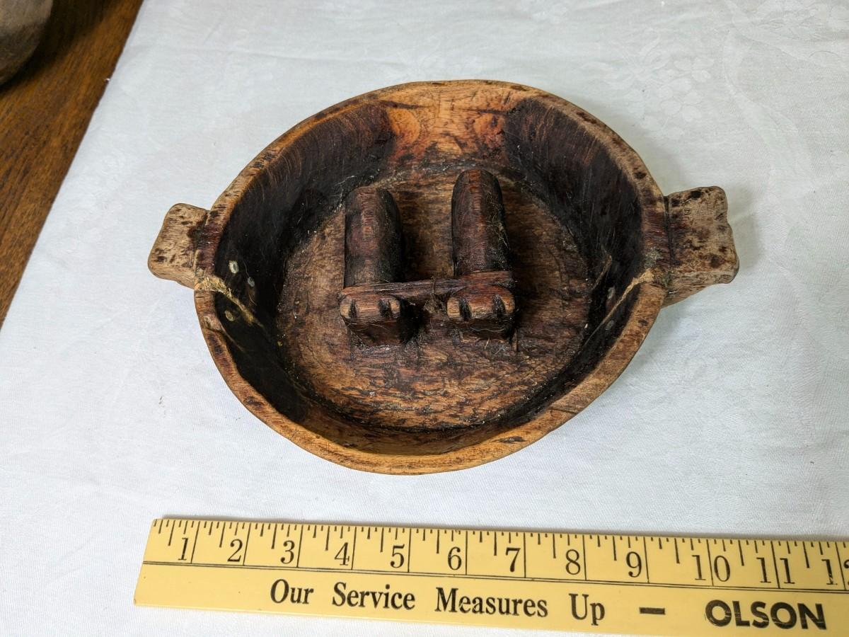 Bolivian Ritual Aymara Wedding Fertility Wood Vessel w/ Figures & bulls