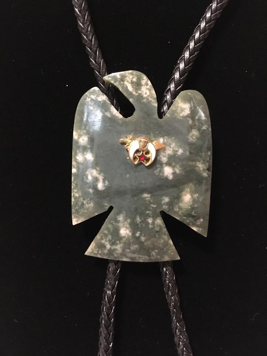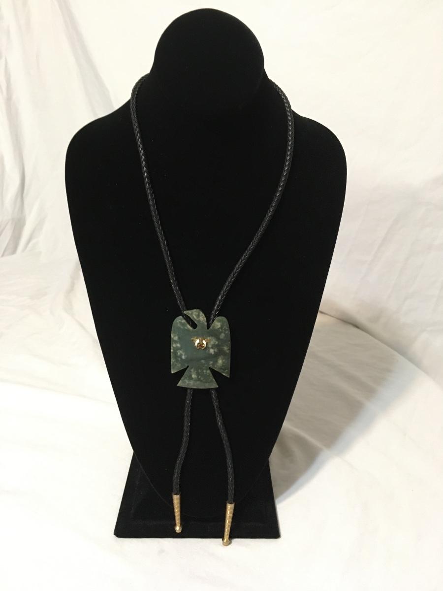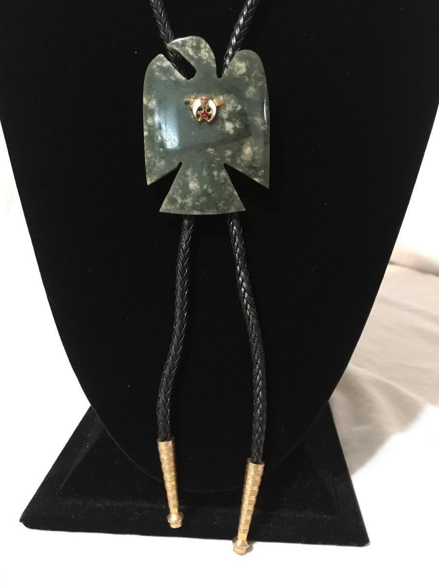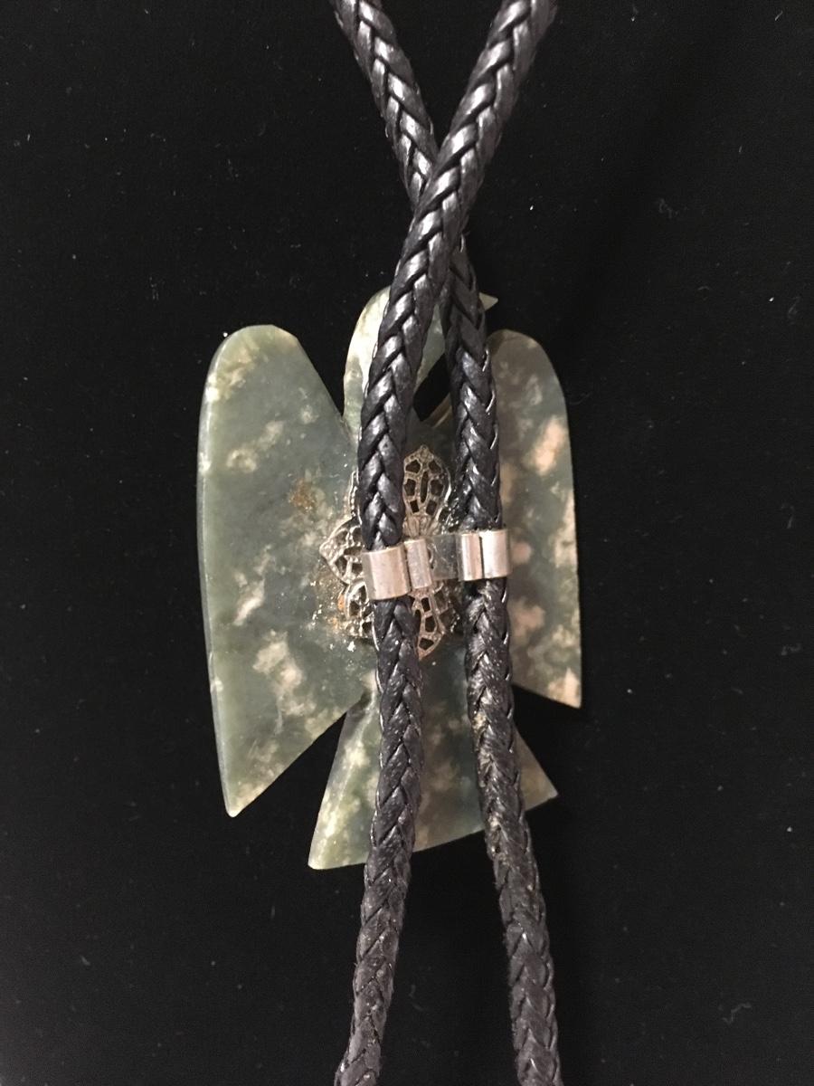 Very nice bolo tie with polish jade stone and a medal on the breast please see attached photos