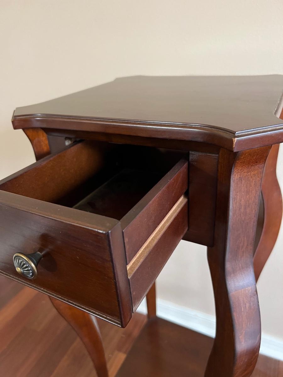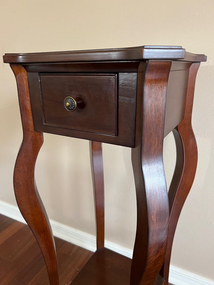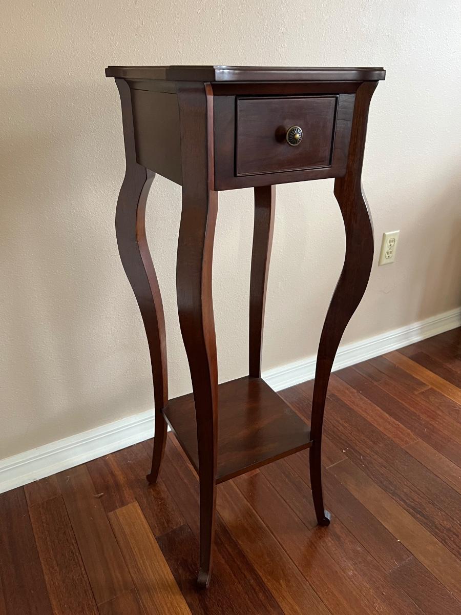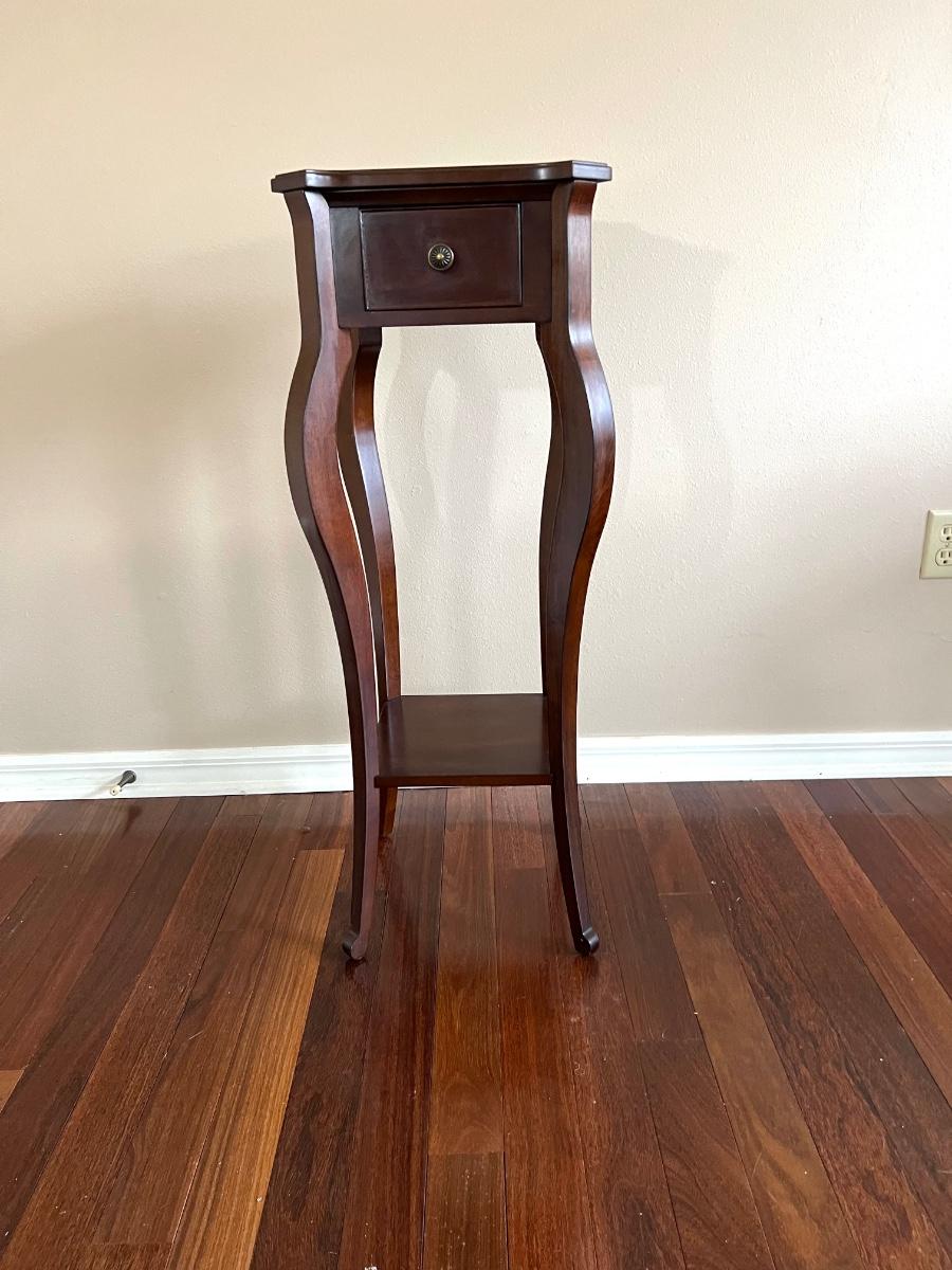 BOMBAY Accent End Table Walnut Measures 3 feet tall 12 inches by 12 inches.