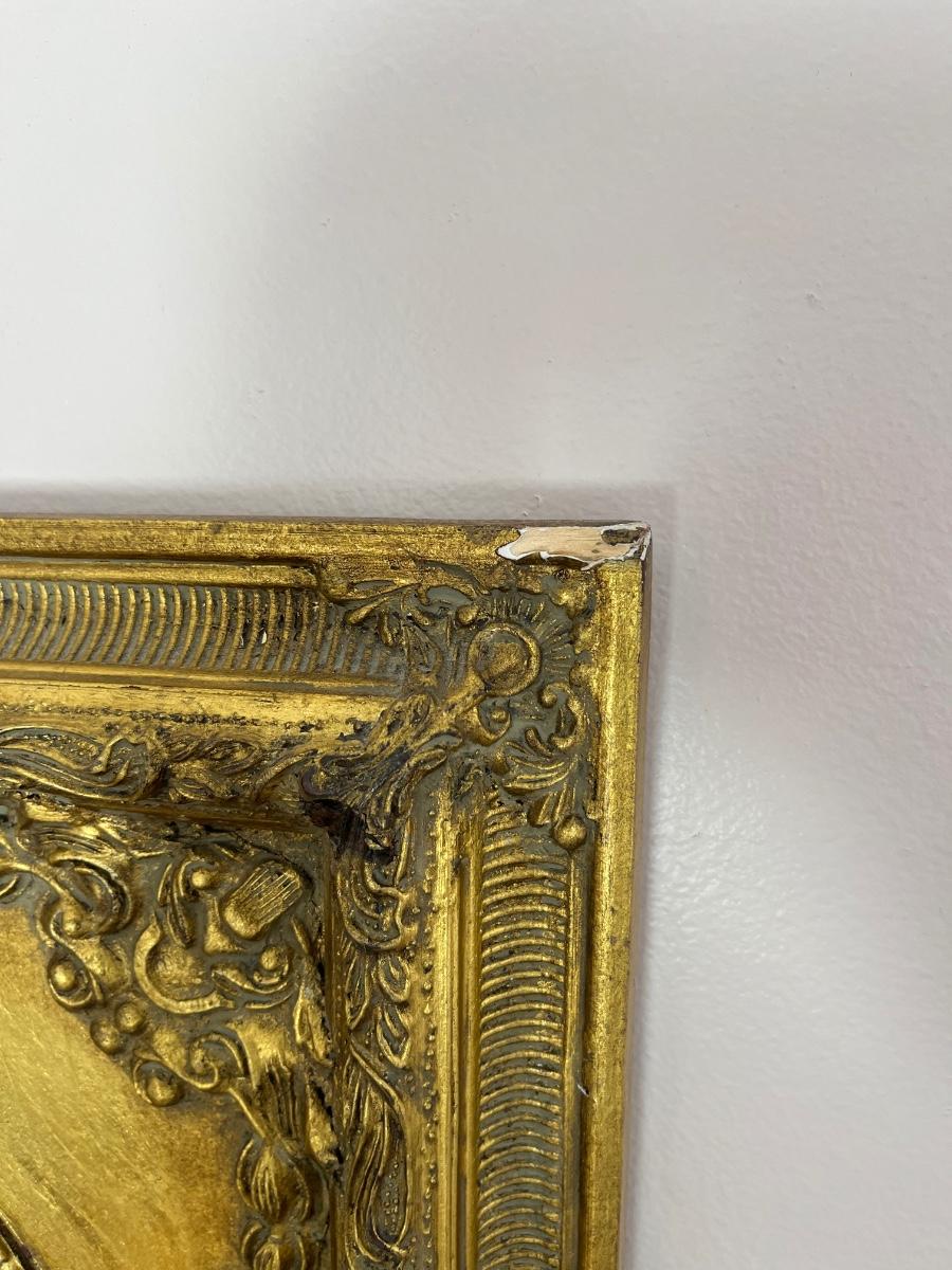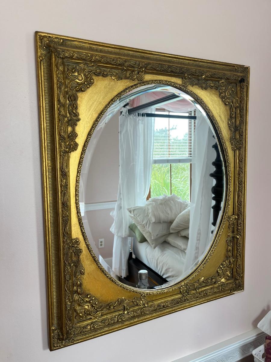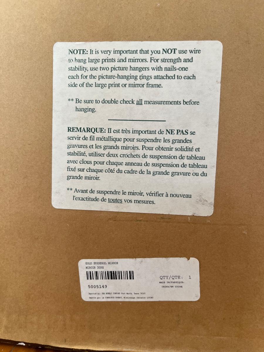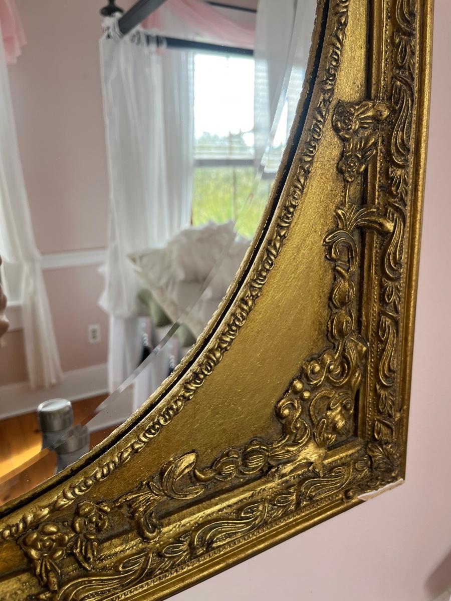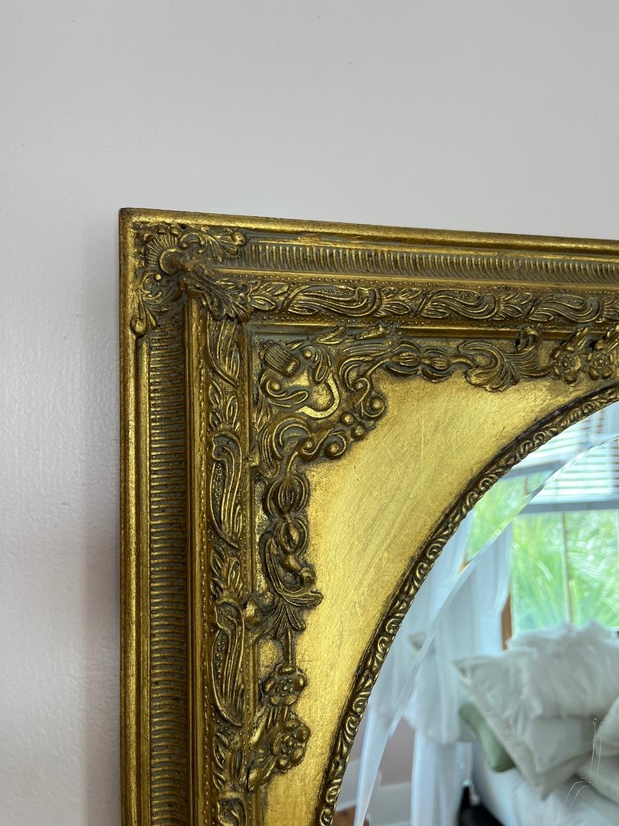 Bombay Co. gold spandrel mirror; approx. 30" x 26"; overall good condition, minor loss top back right corner of frame;