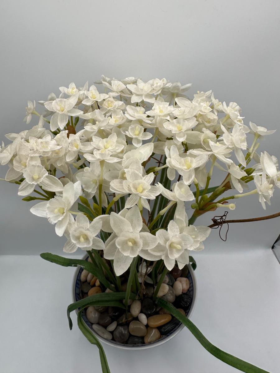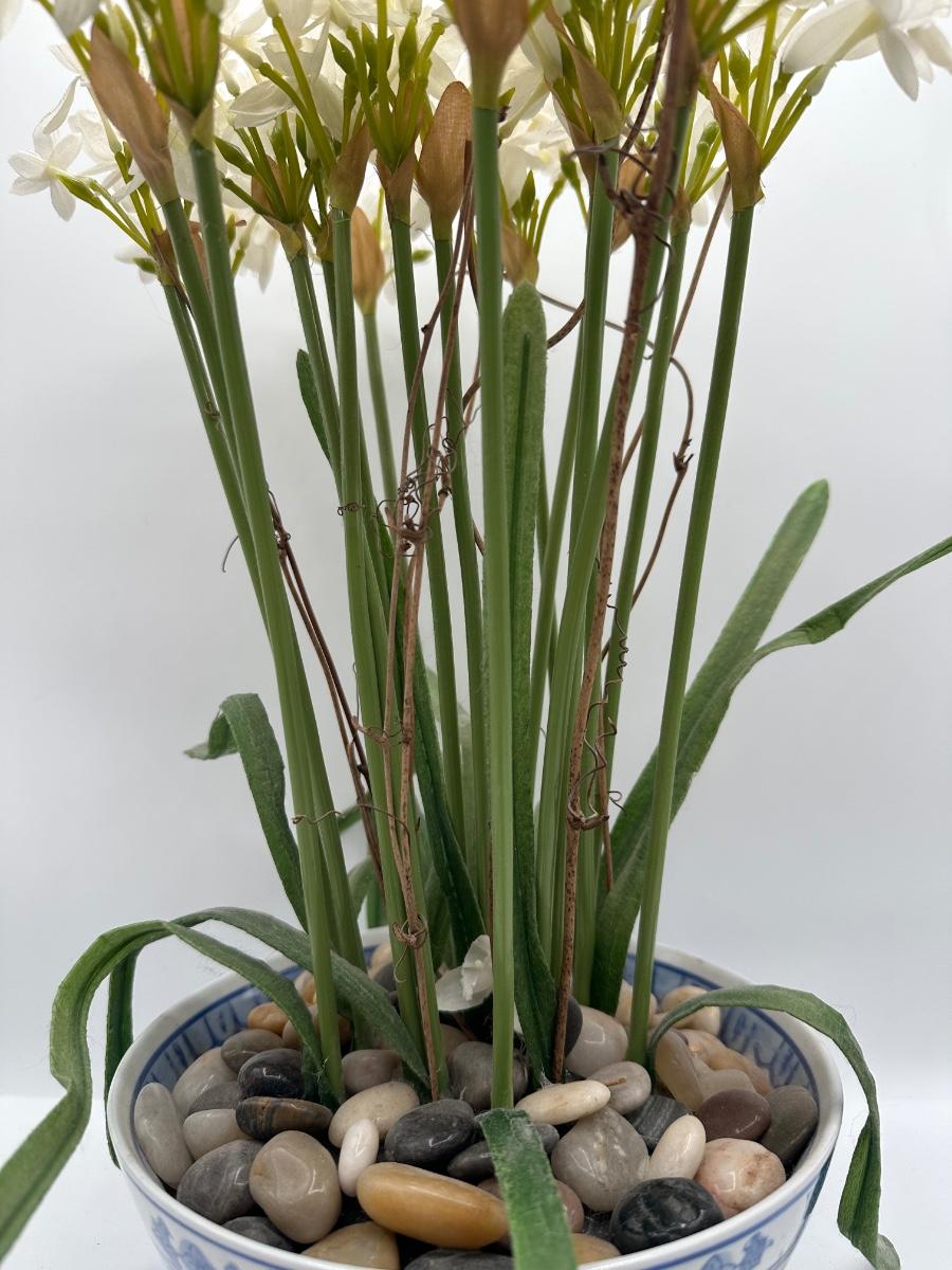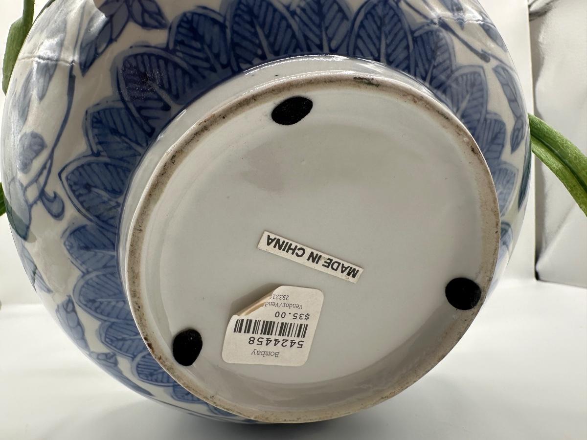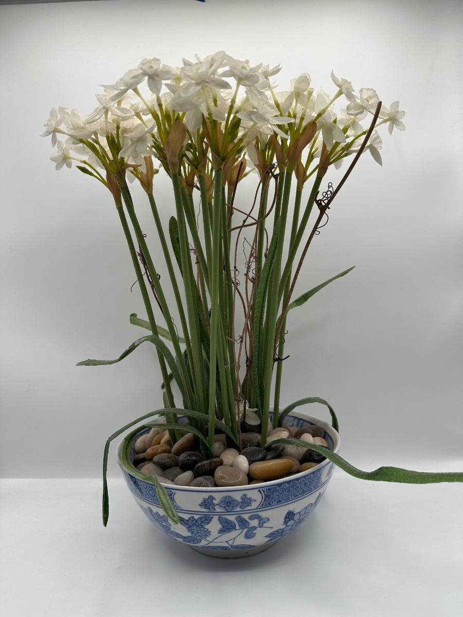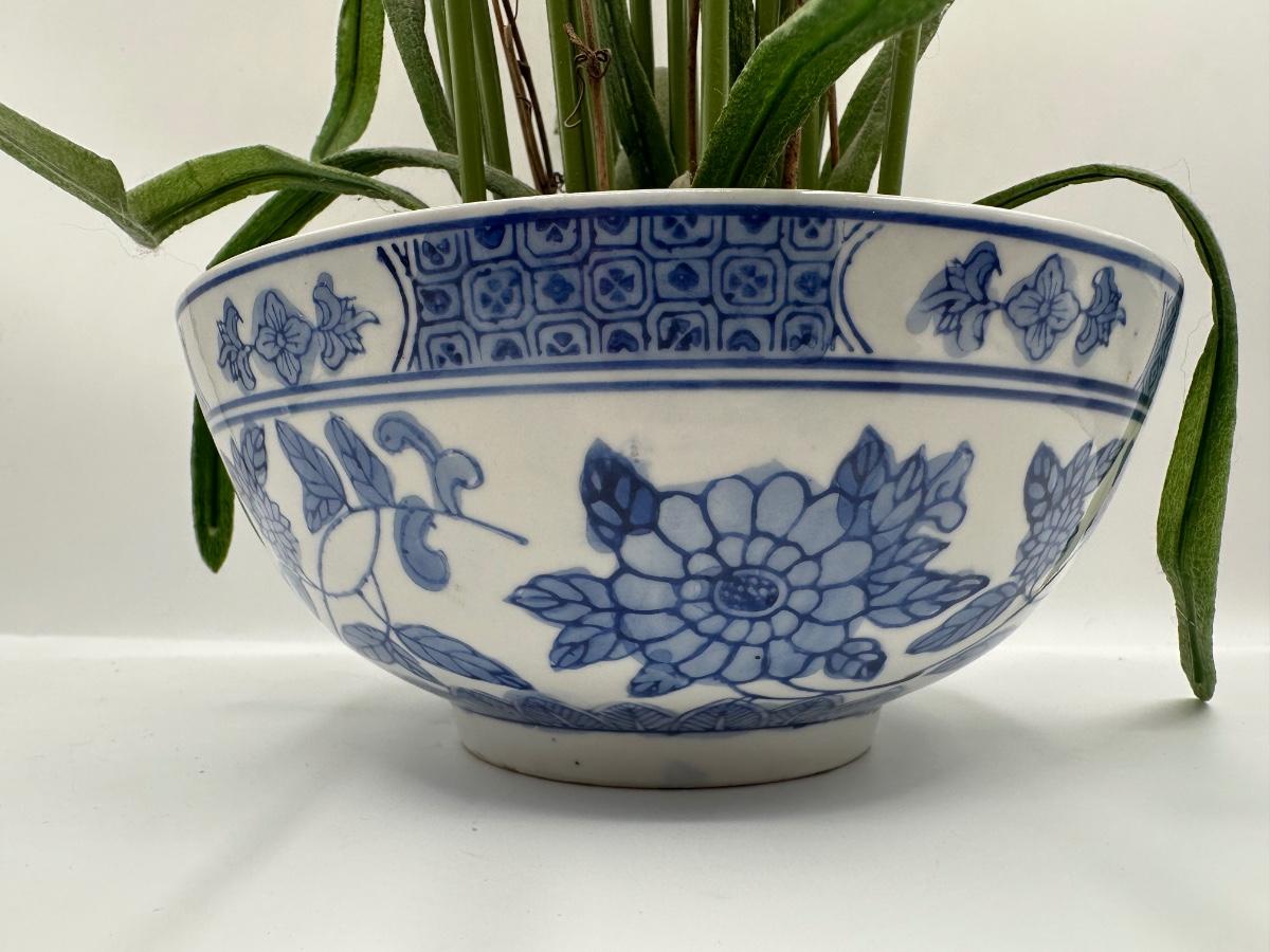 Bombay Company Blue & White Porcelain Bowl with Faux White Flowers