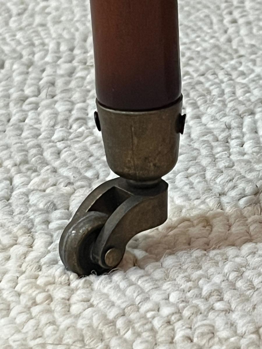 24 3/4” H x 17 3/4” W x 12” D ~ The one drawer slides easily ~ Metal casters roll easily