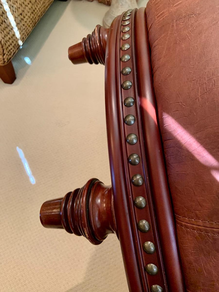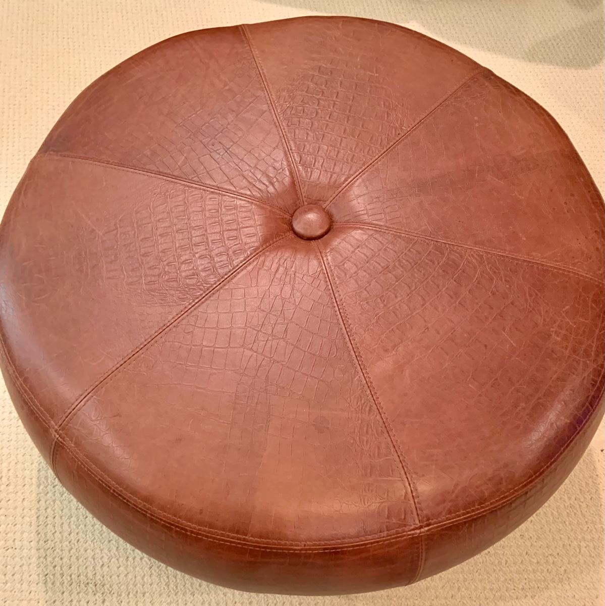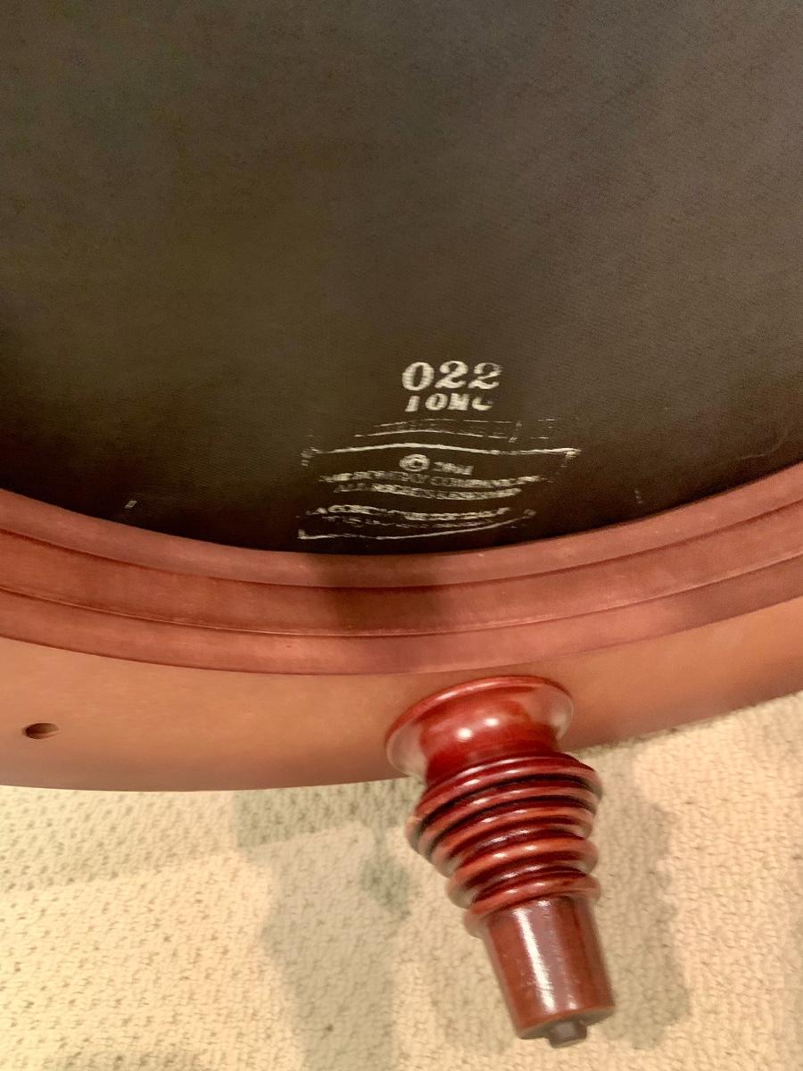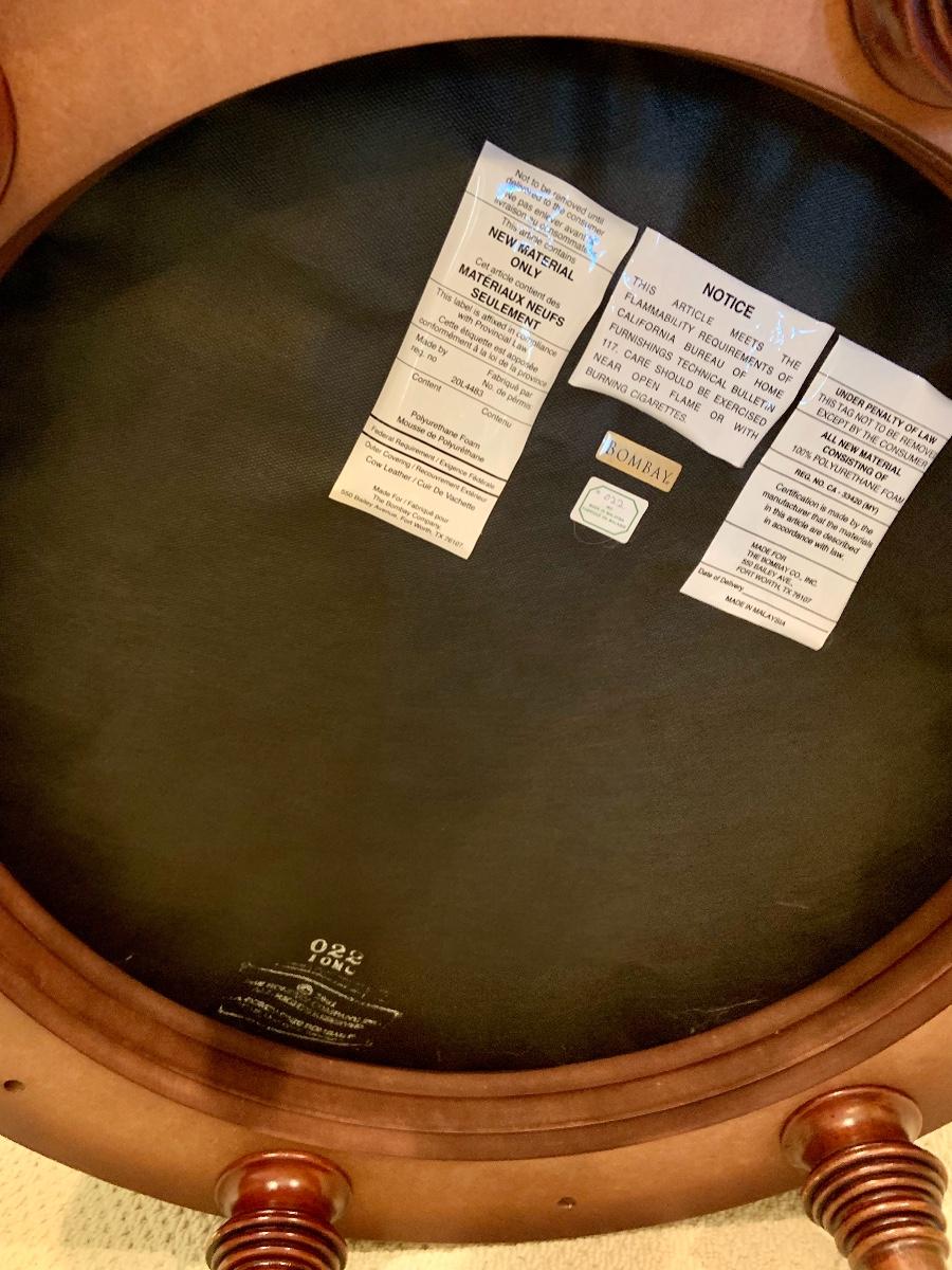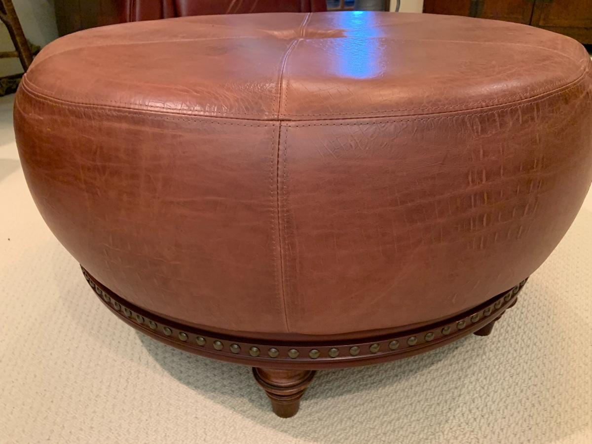 Measures 32" Round and 17" High with nailhead trim and decorative feet