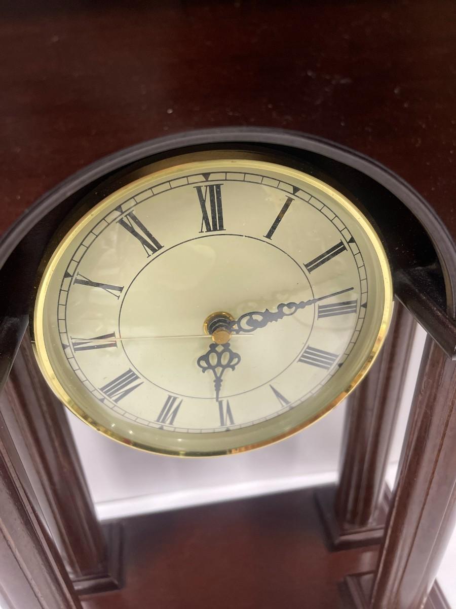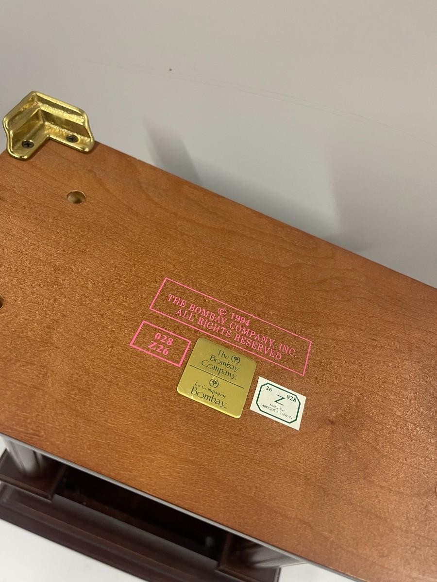 Bombay Company Mantle Clock, Circa 1994. Very good condition, untested. 14 3/4" high x 10 1/2" wide x 6".