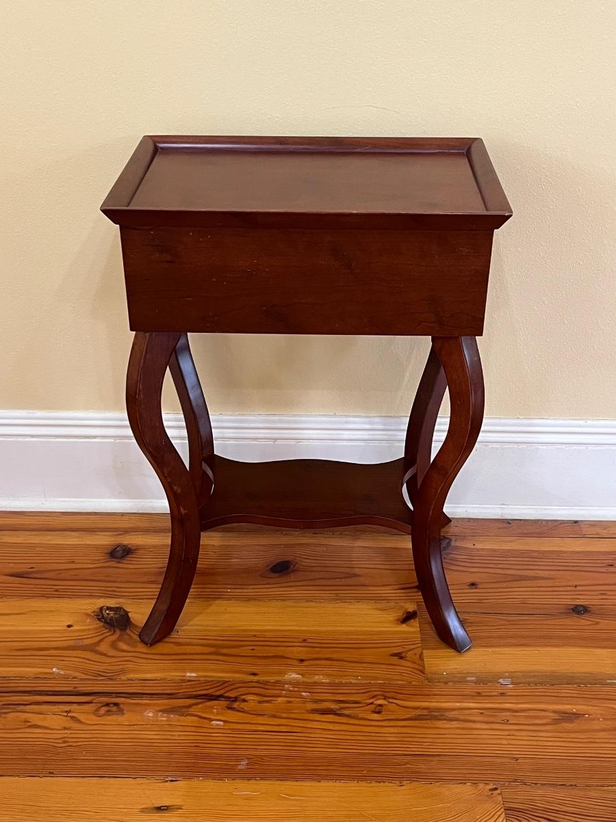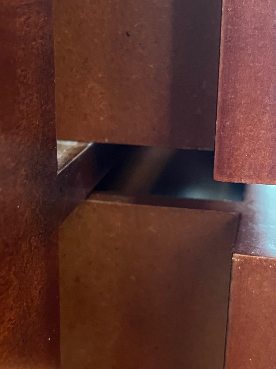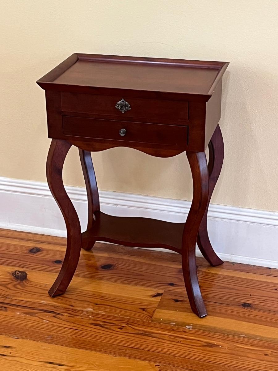 26” H x 18.5” W x 12” D ~ 2 Drawers slide easily ~ Skeleton key is faux and cannot be removed
