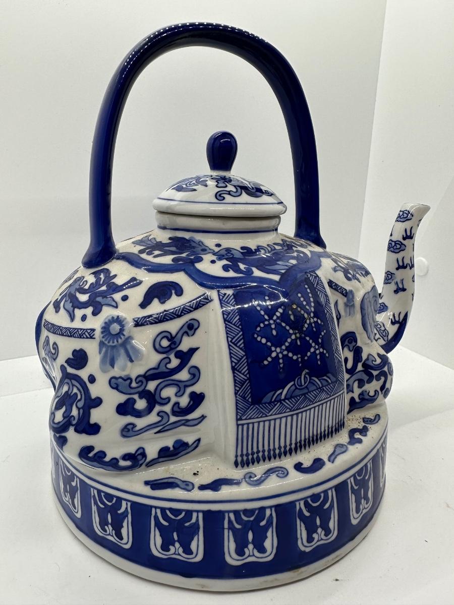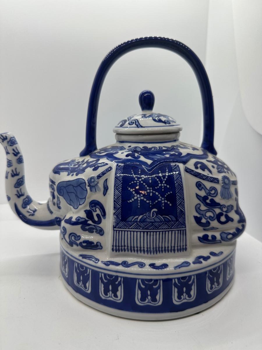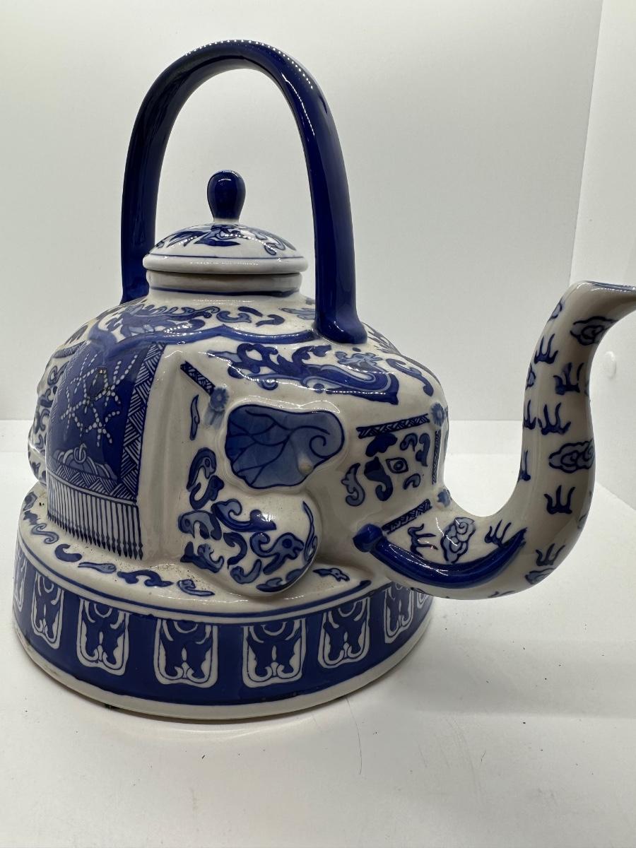 BOMBAY Elephant Teapot Ceramic Blue & White