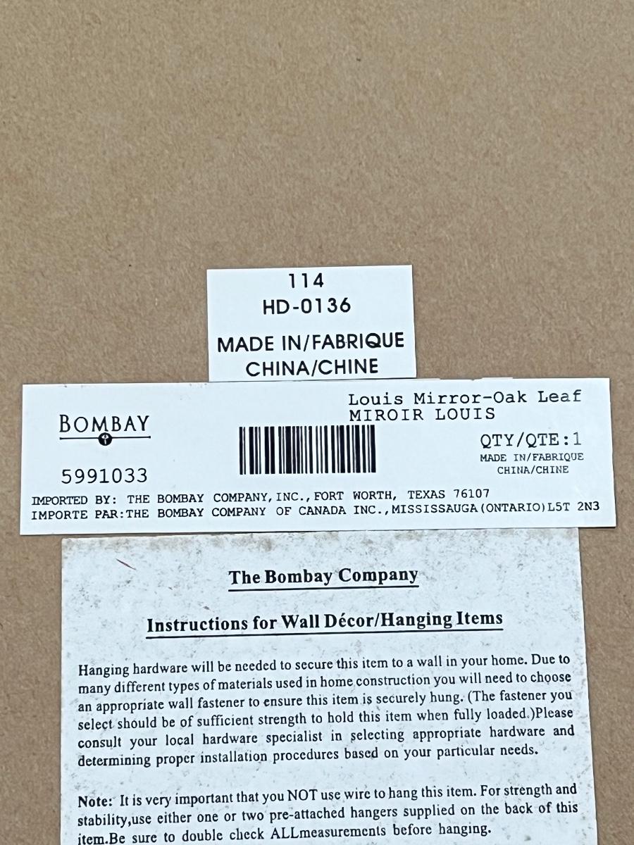 BOMBAY ~ Louis Mirror ~ 36” Oak Leaf Beveled Mirror