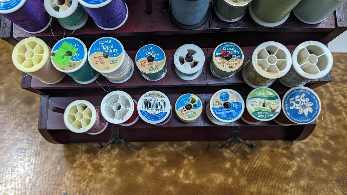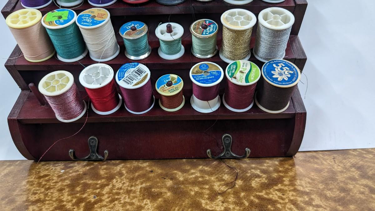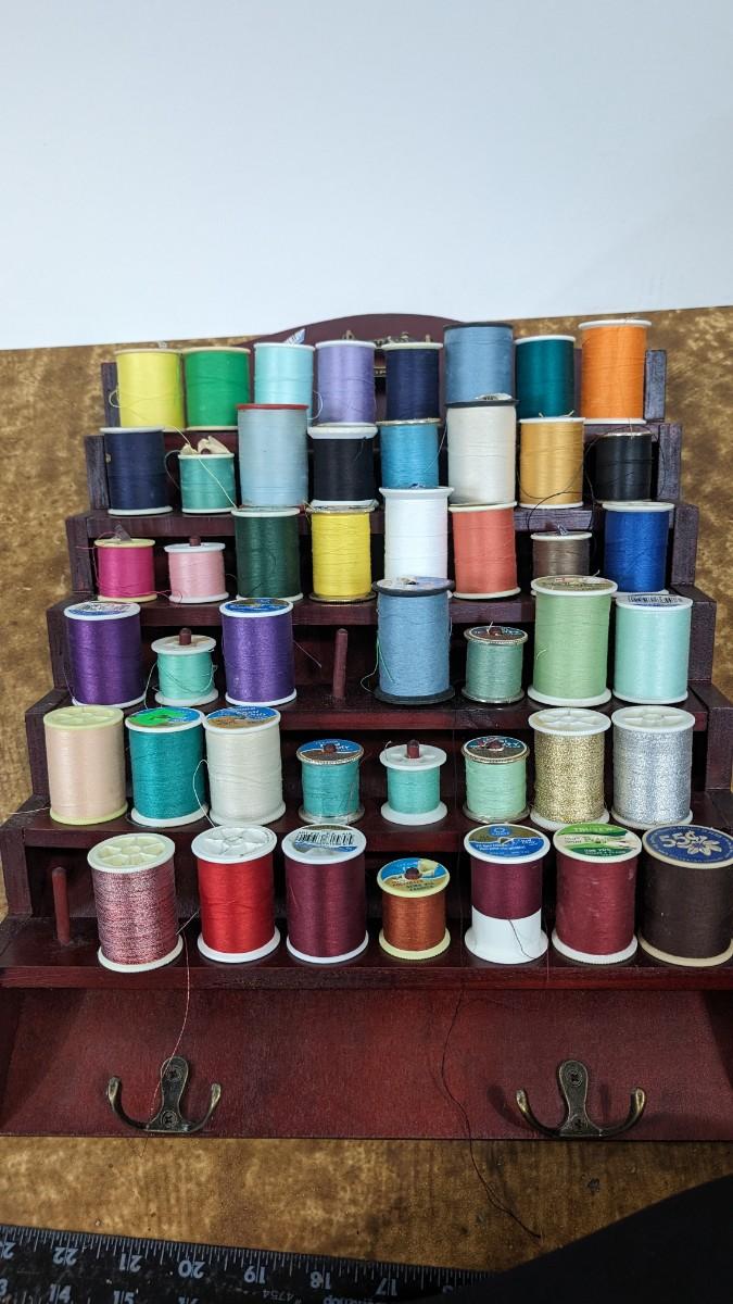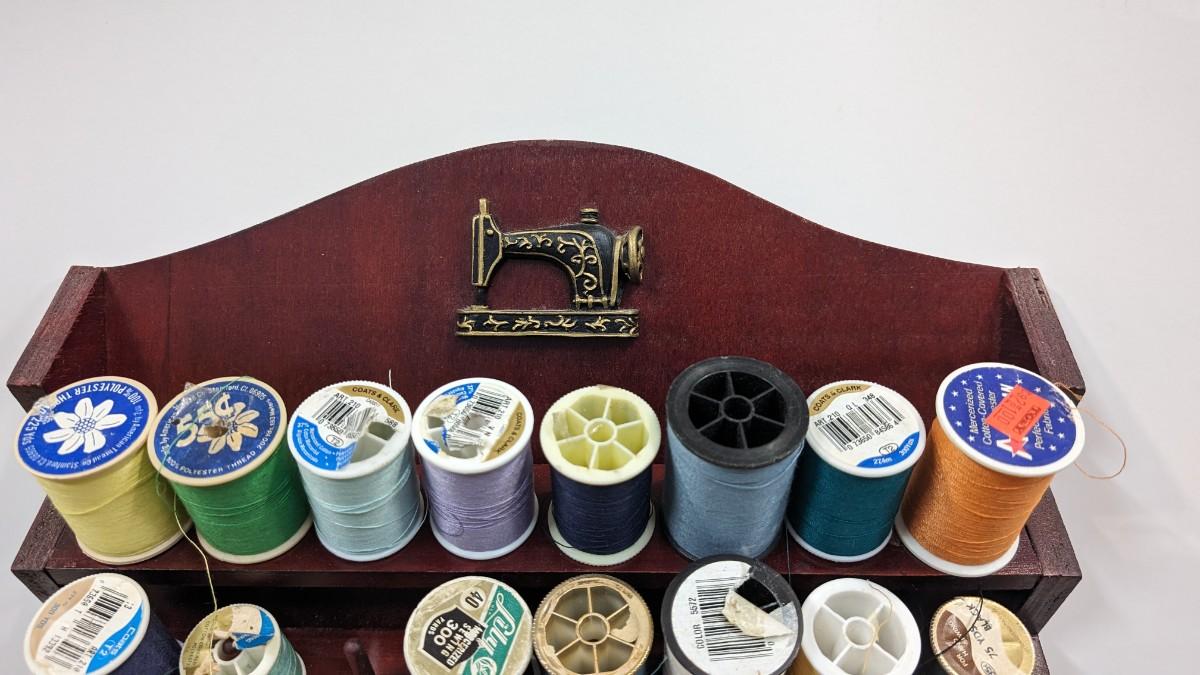 This is a nice Bombay Thread Display Shelf Wall Decor Wooden with Thread included.