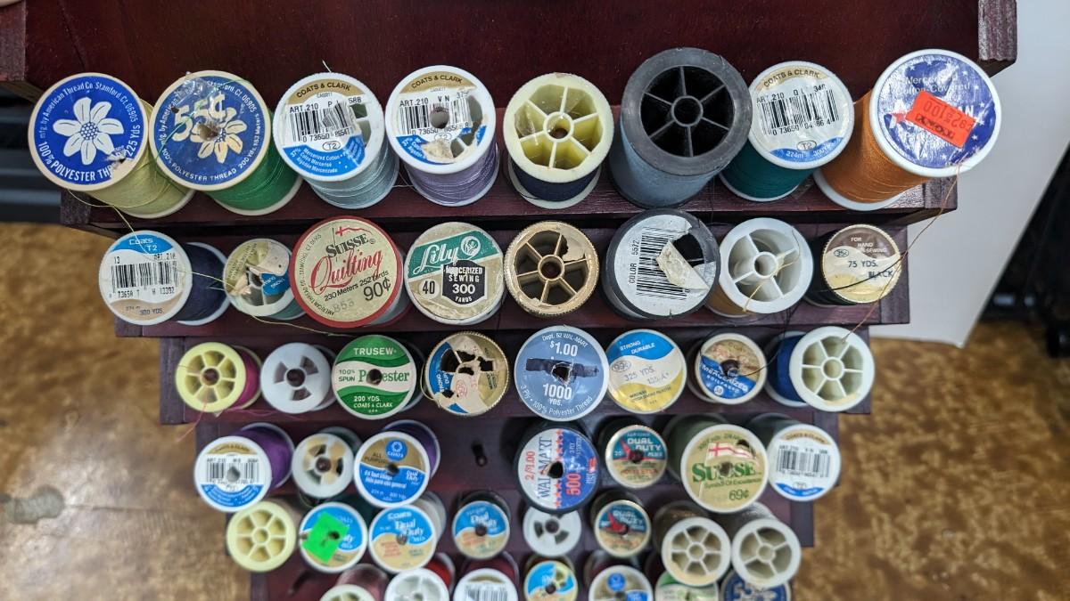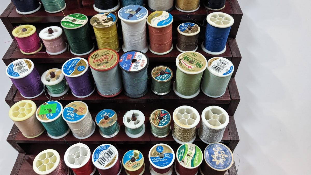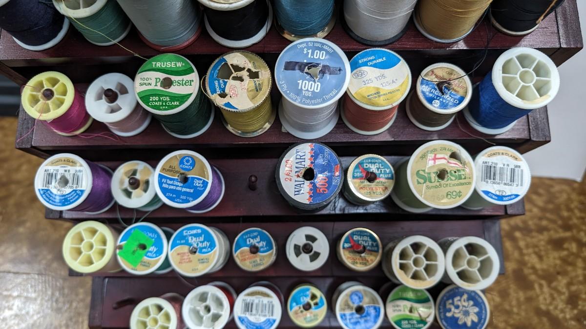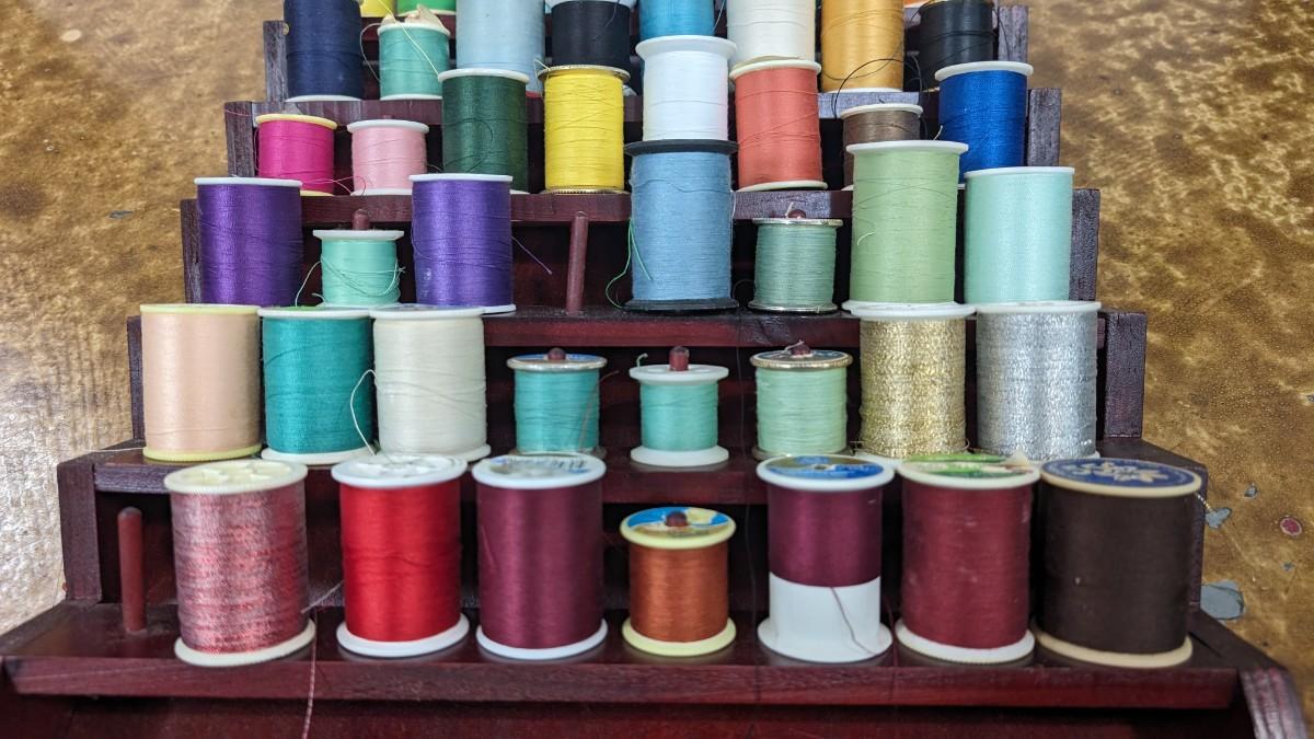 This is a nice Bombay Thread Display Shelf Wall Decor Wooden with Thread included.
