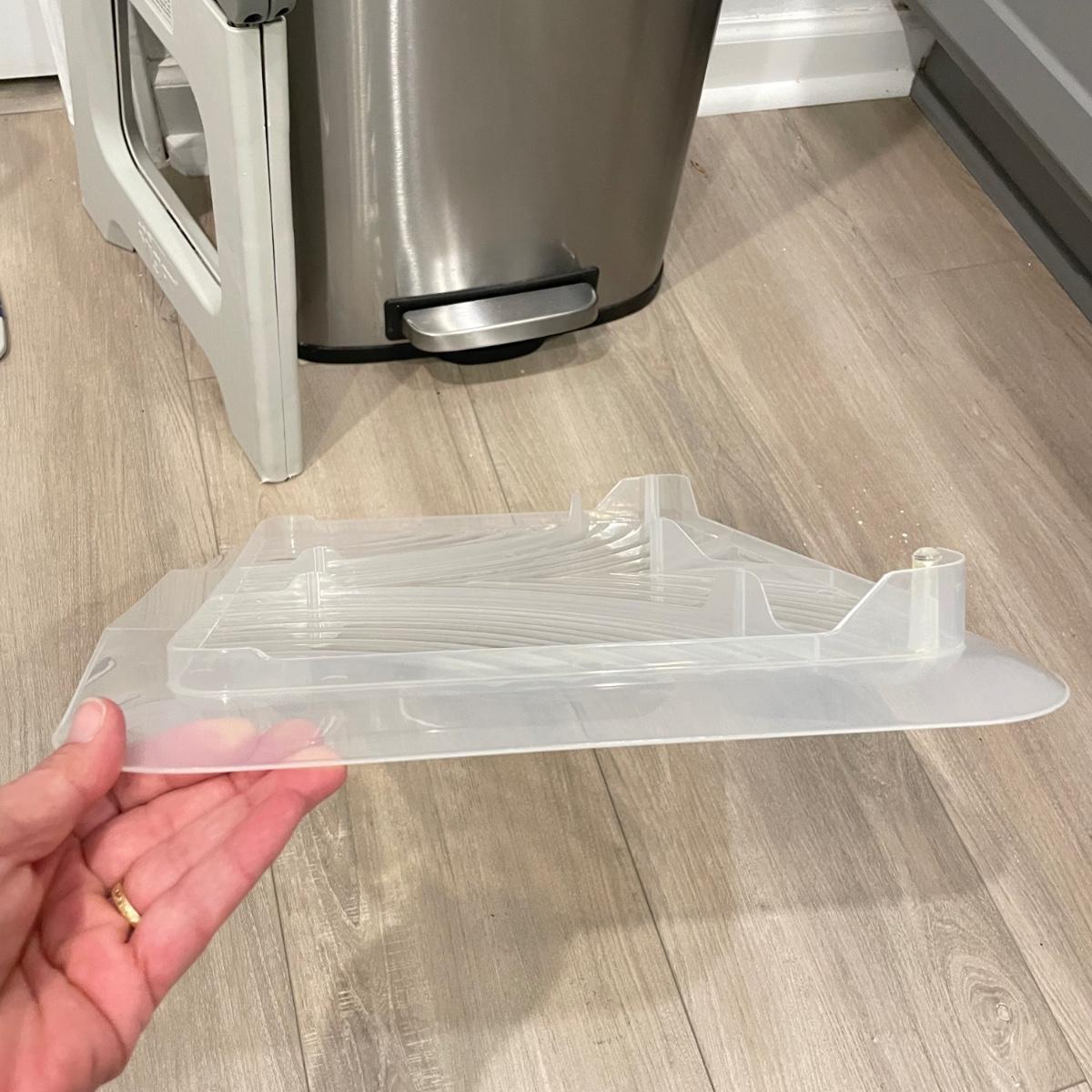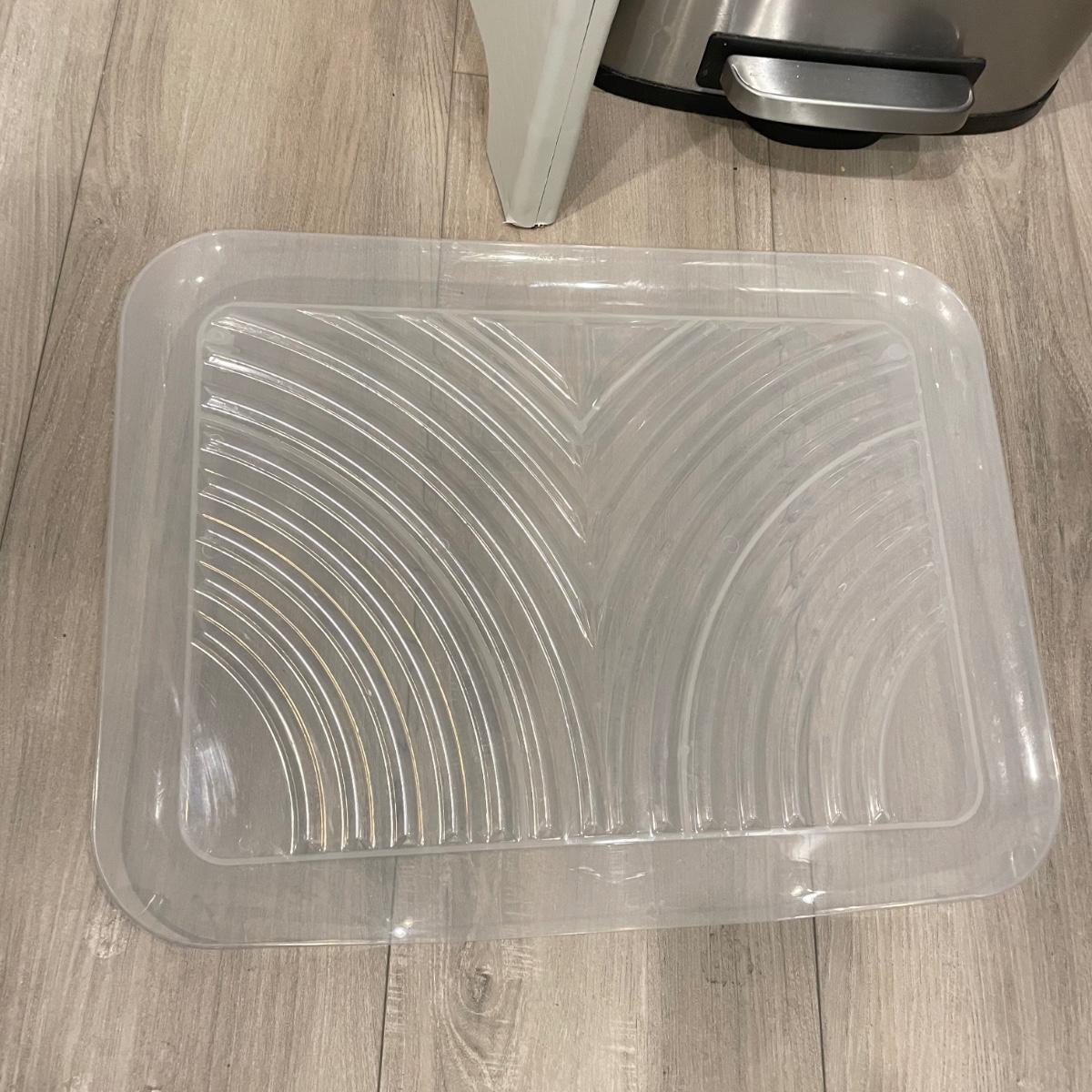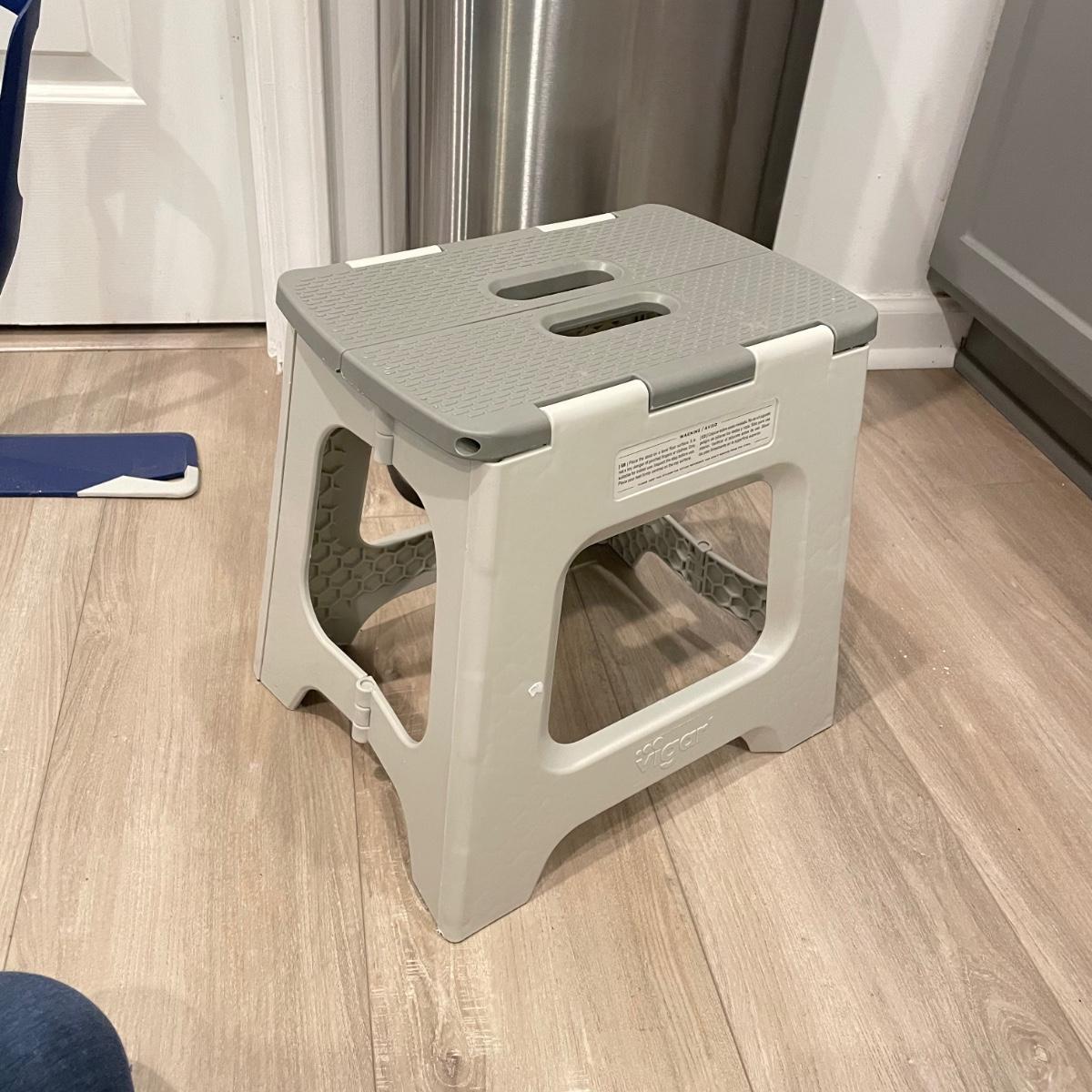 Everyday necessities here! A metal trash can with foot pedal measures 13.5” x 11” x 25”H. Lot also includes a Bona mop with five pads, a 12.5” high folding foot stool and a plastic sink draining mat. An opened Bona cleaning solution bottle is included if buyer wishes, we cannot verify the contents of the bottle. See images. Local pick up only.