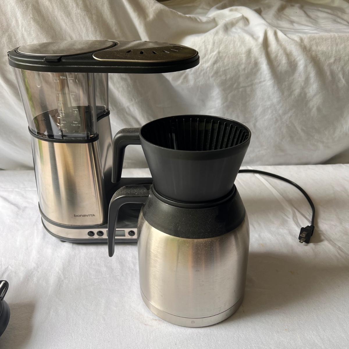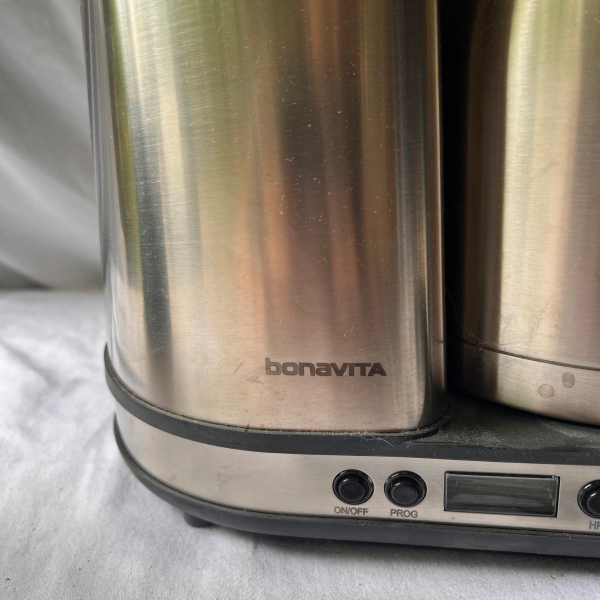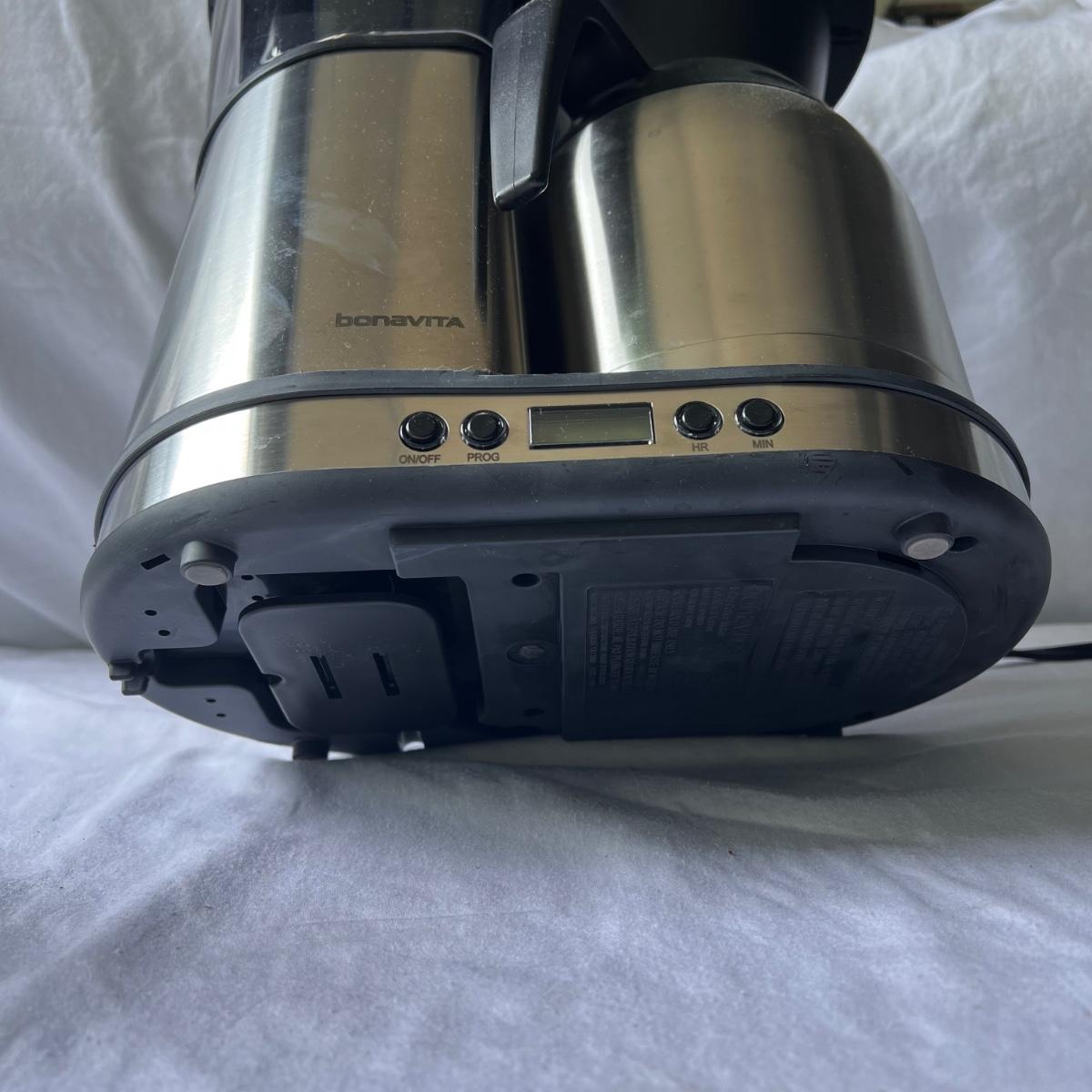 Lot includes one Bonavita coffee maker and one coffee bean grinder. The coffee maker measures 10” x 7” x 12”H. Both the coffee maker and bean grinder powered on when plugged in. Shipping available.