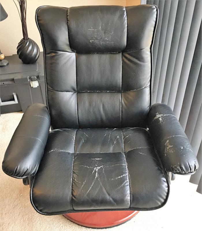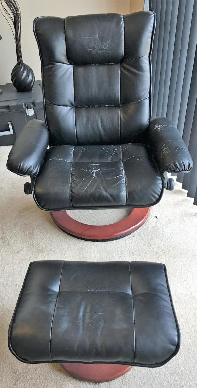 This recliner is in fair to poor condition and the leather is cracked (pictured). The ottoman is in good condition however, it shows signs of wear