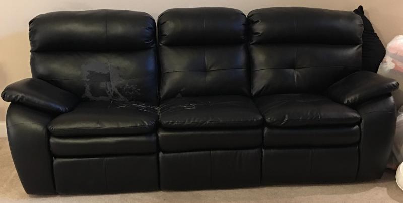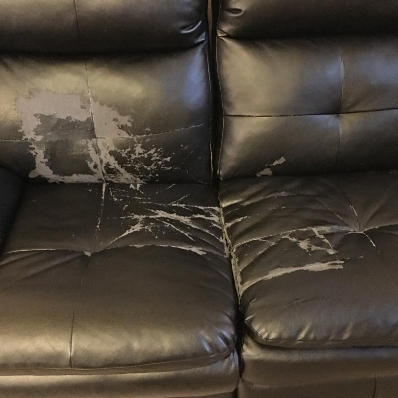 This bonded leather sofa has solid integrity however, the leather is cracked and is in poor condition