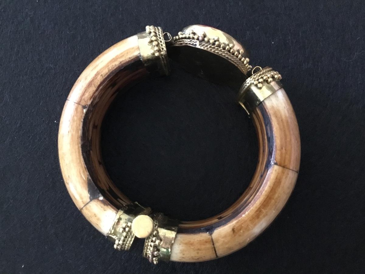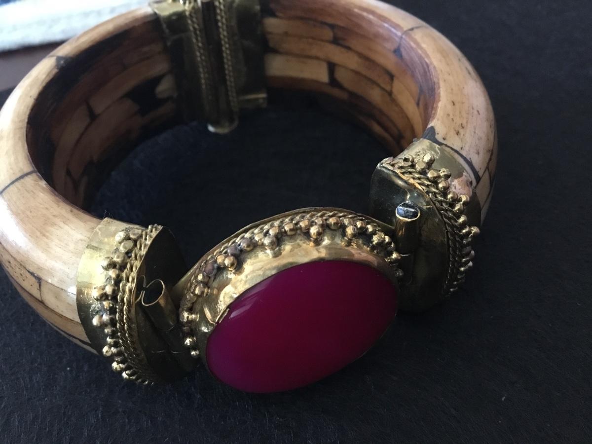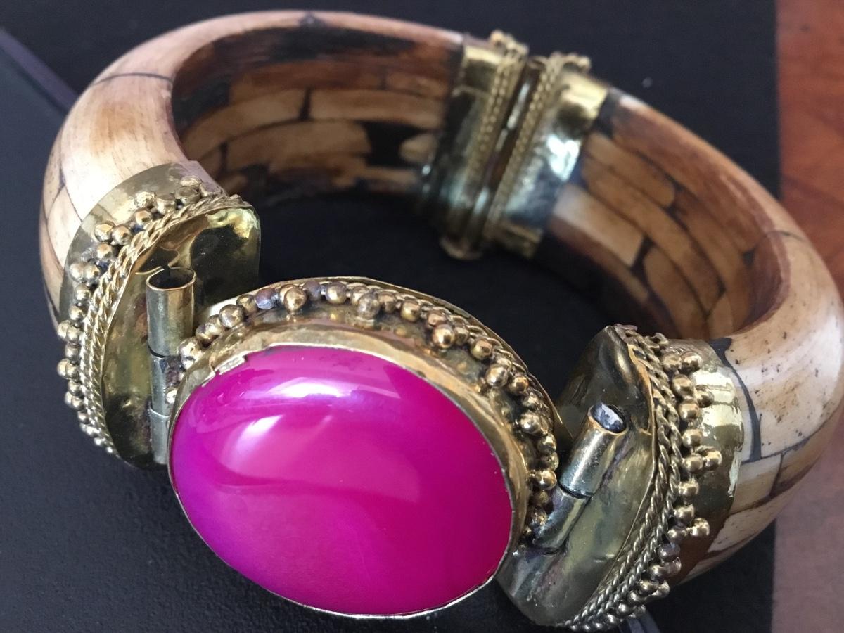 Bone/ Brass /Pink Stone Hinged.