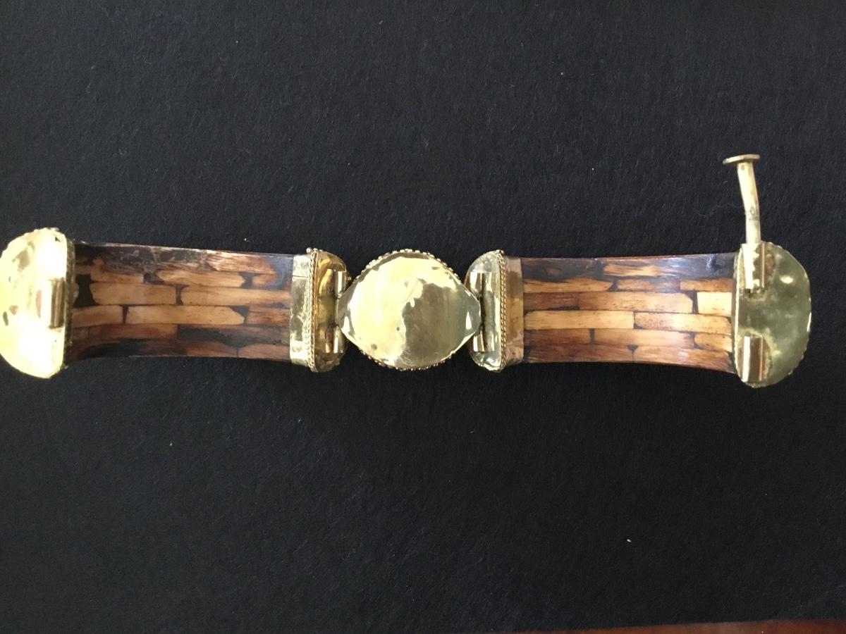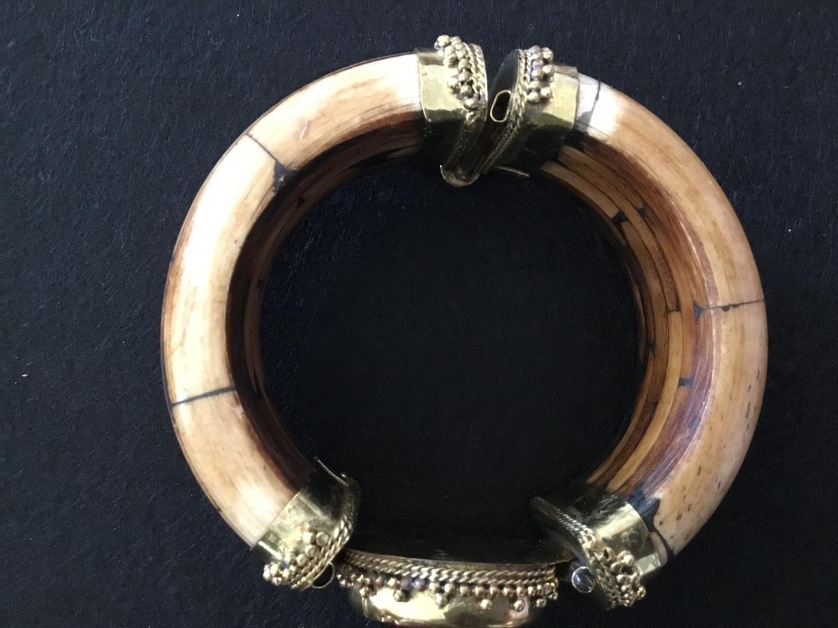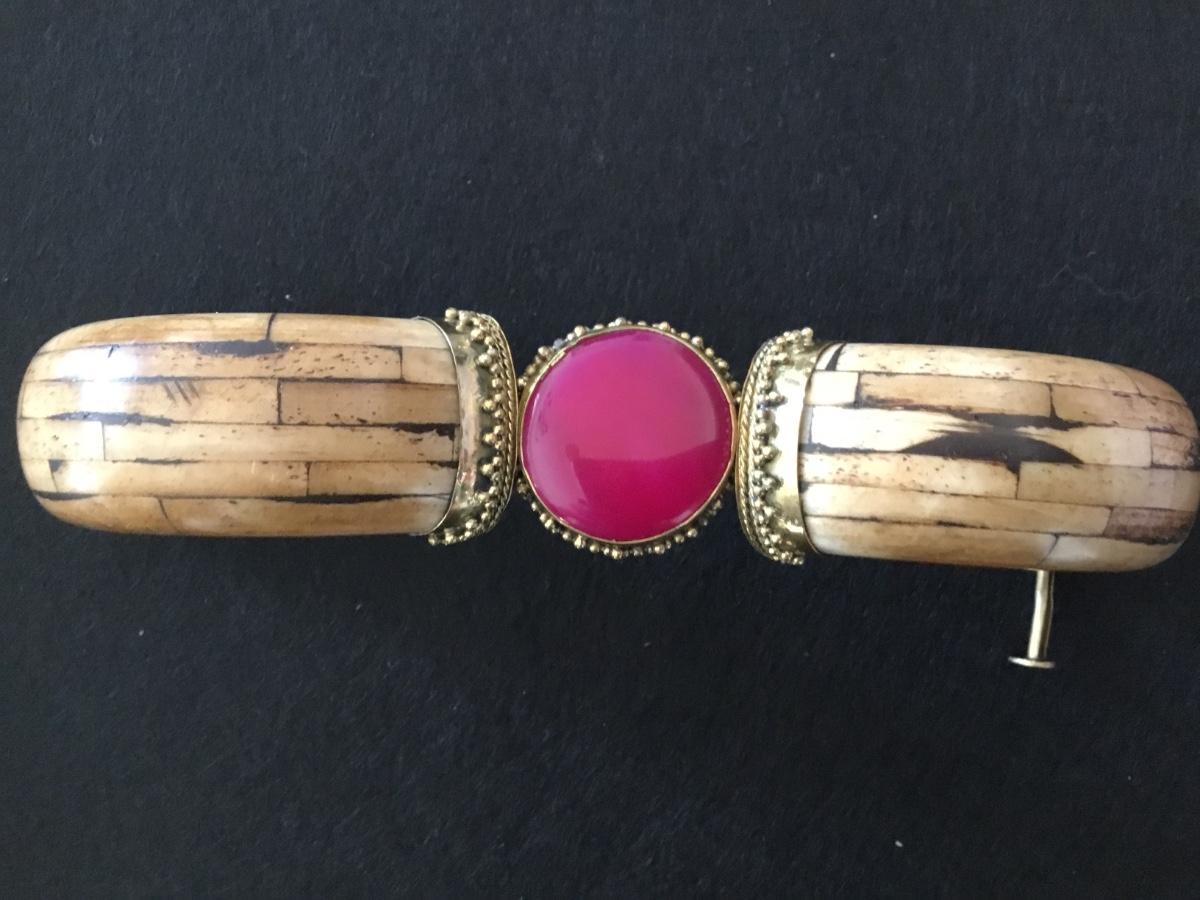 Bone/ Brass /Pink Stone Hinged.