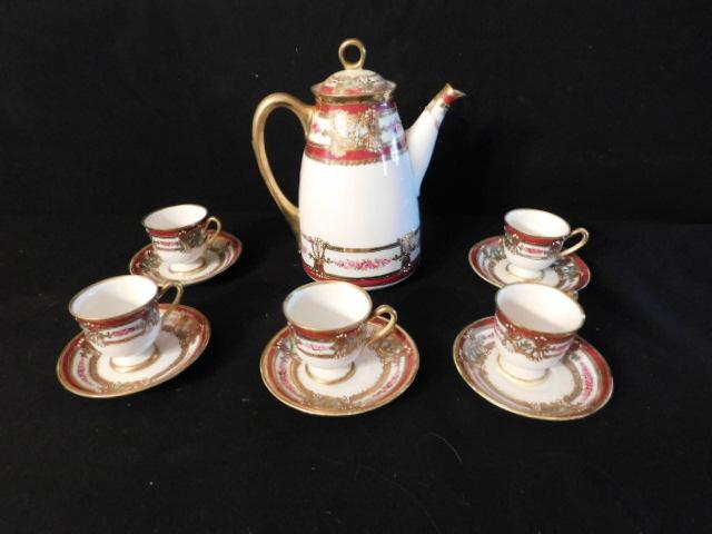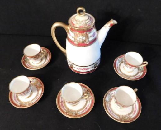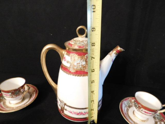 Bone China Tea Set Red and White