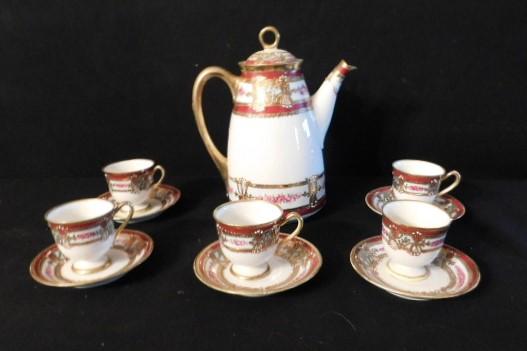 Bone China Tea Set Red and White some minor chips on cups