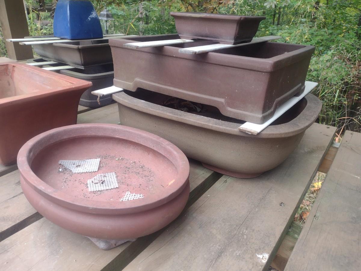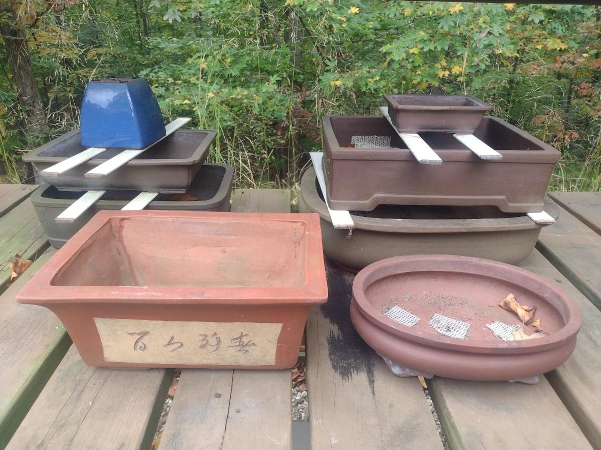 Assortment of Bonsai and Plant Trays and Pots