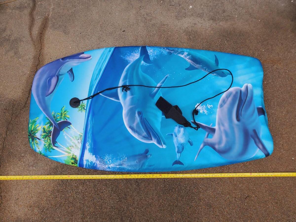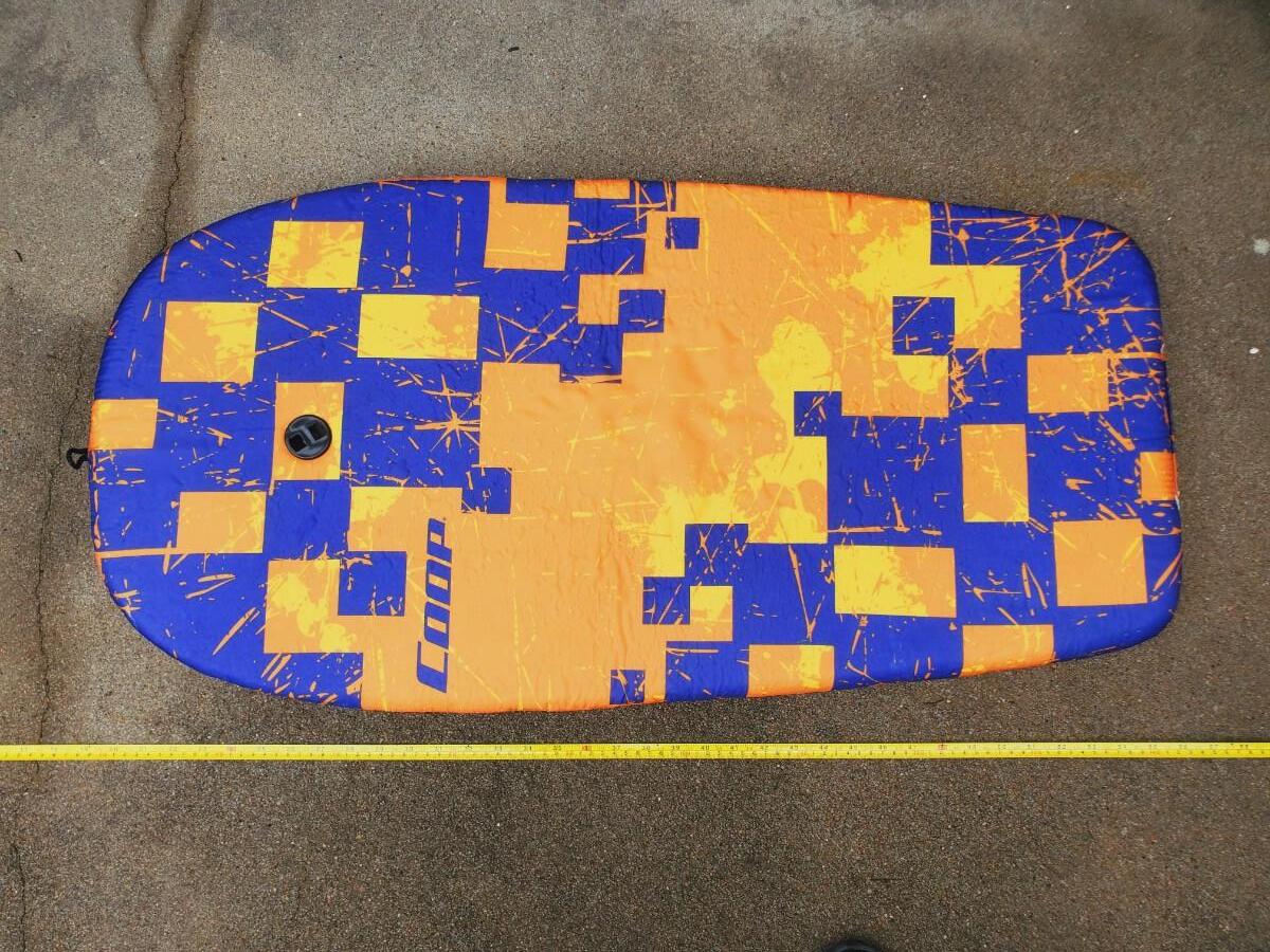 2 boogie/water boards, both used. The dolphin one has foot strap attached. Orange COOP board is missing the foot strap. Please see photos