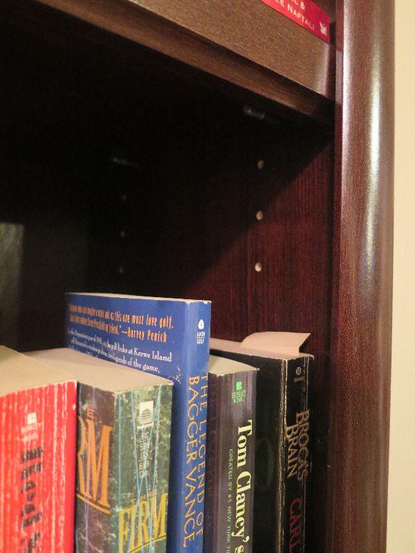 Wood and laminate book case. Separates into 2 pieces for easier removal from basement. Adjustable shelves. Very good condition. Bring tools and help to move. 29x12x71. **Please read Terms and Conditions before placing a bid. Pick up is Wednesday July 31st, from 2 pm to 7pm in Sicklerville. All sales are final. All sales are as is, where is. Please review all photos. Any props included in photos are not included in listing. All measurements are approximate.