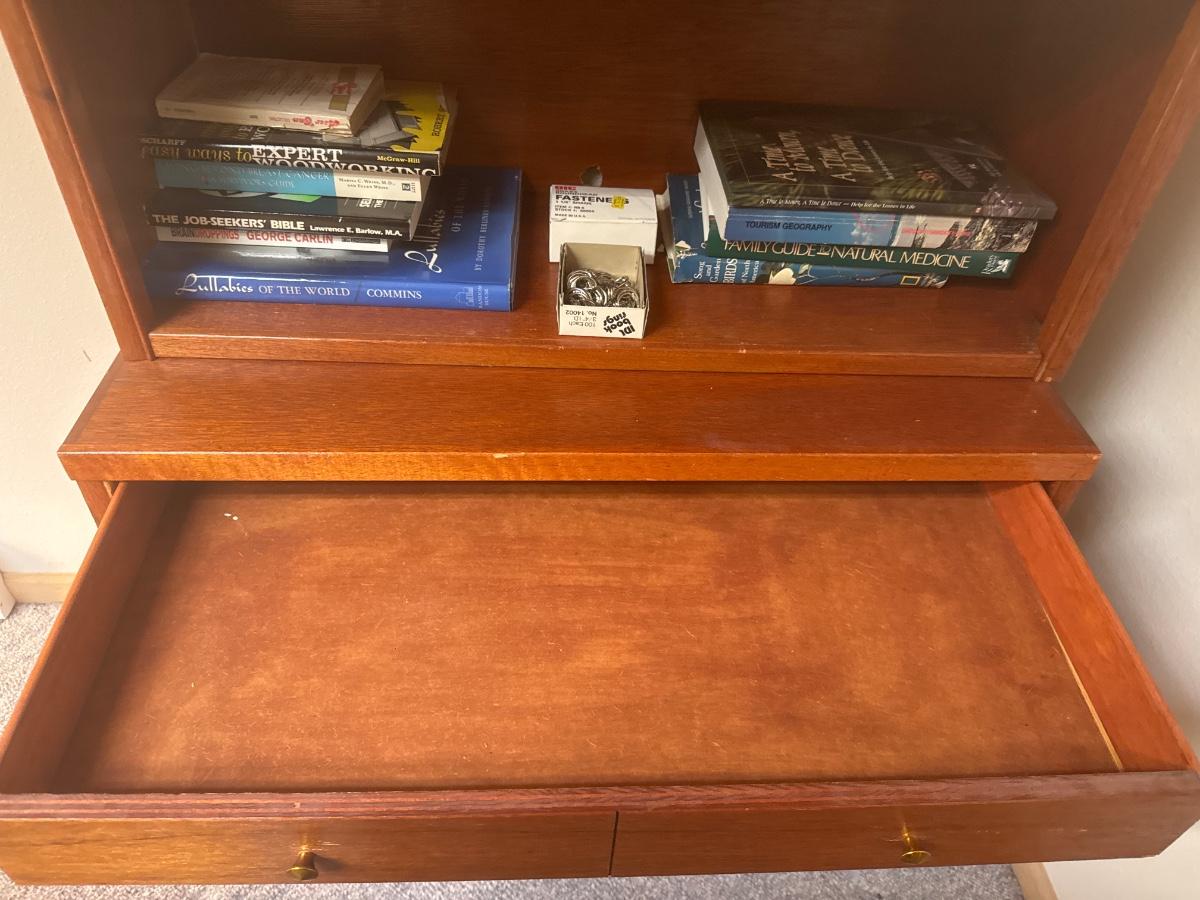 Must take everything shown in pictures. Dimensions are 54 inches tall by 32 1/2 inches wide by 16 1/2 inches deep. The top part just sits on the bottom part and is not screwed down.