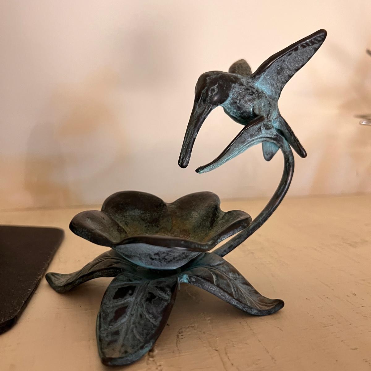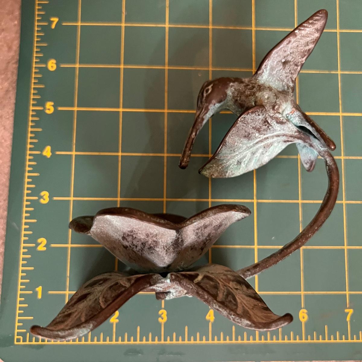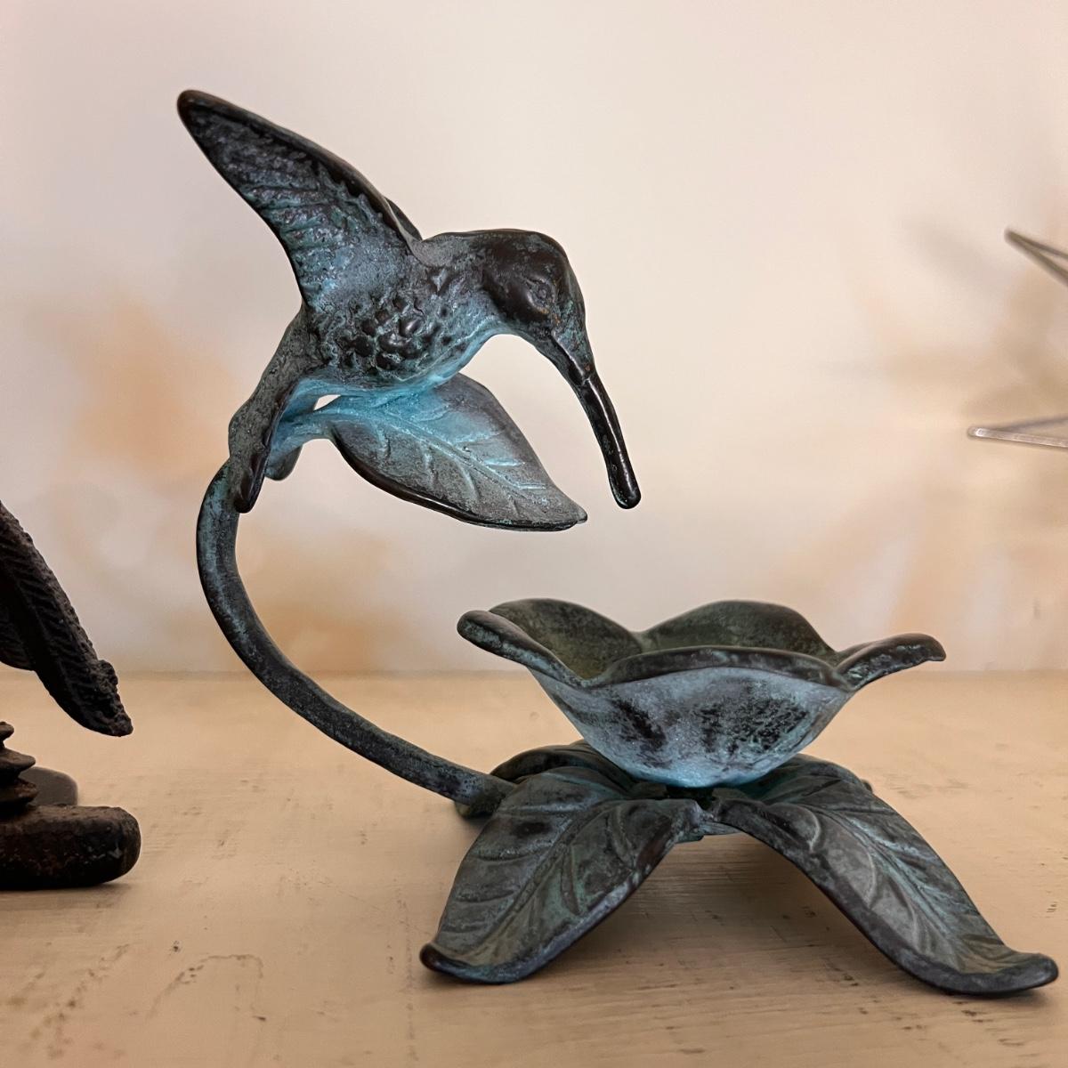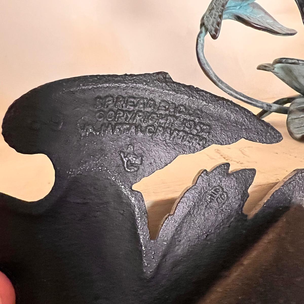 Virginia Metal Crafters "Spread Eagle" door stop, book end, mantle decor. Vintage San Pacific International SPI Bronze Cast Hummingbird Wildlife Water Feeder Garden Art Sculpture. Both in great condition!