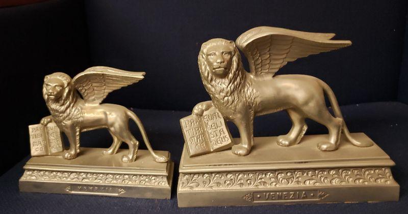 two Antique Grand Tour Lion Of Venice Saint Mark Italian Paperweight Figures