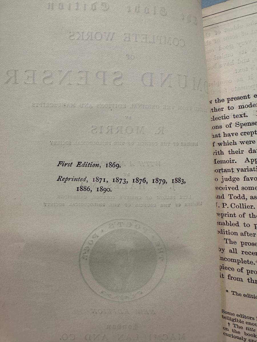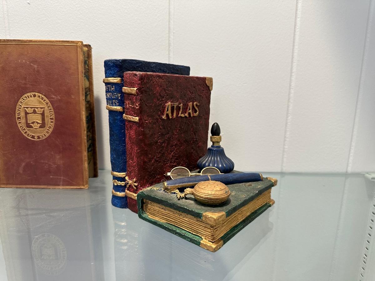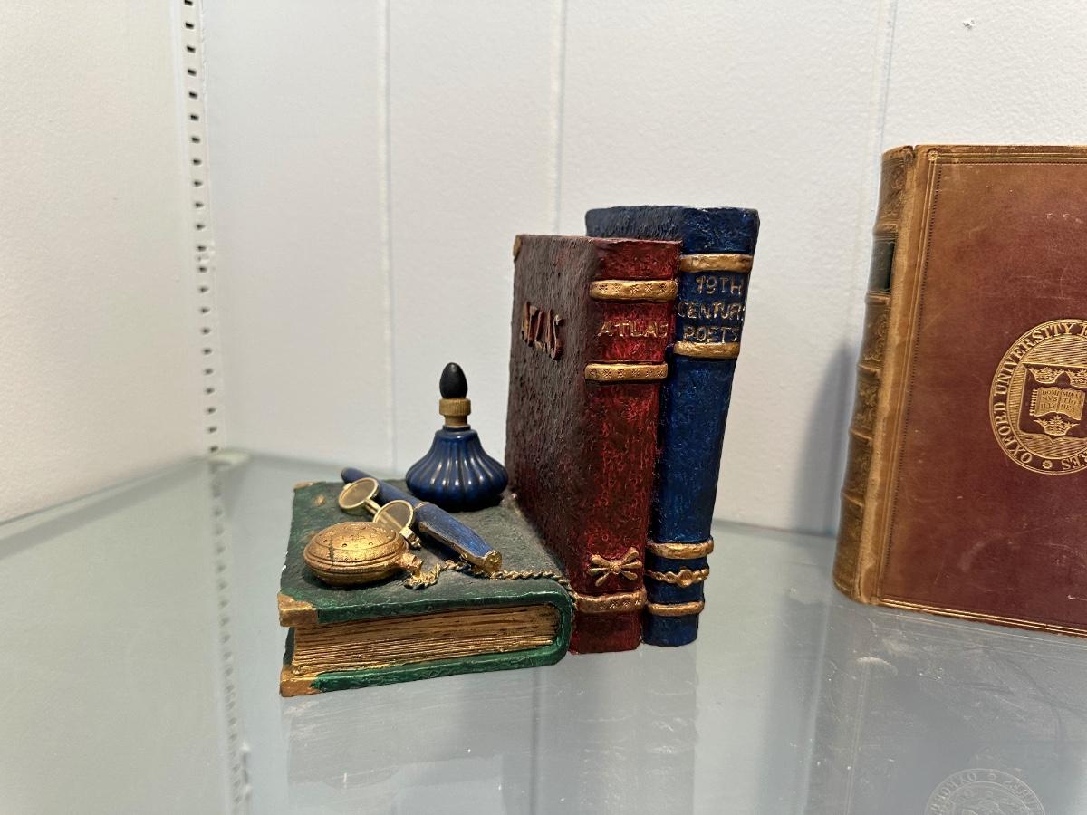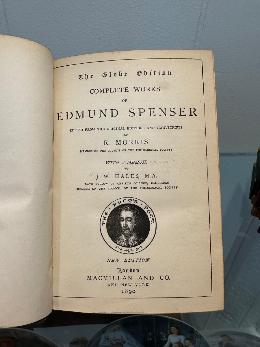 BOOK ENDS AND ANTIQUE BOOK "COMPLETE WORKS OF EDMUND SPENSER"