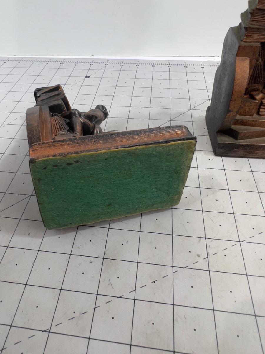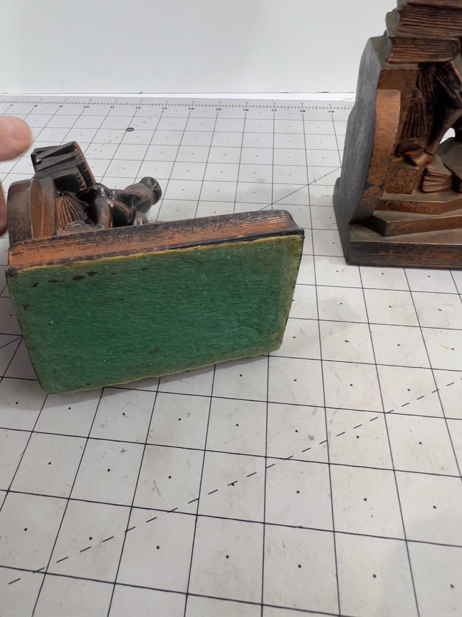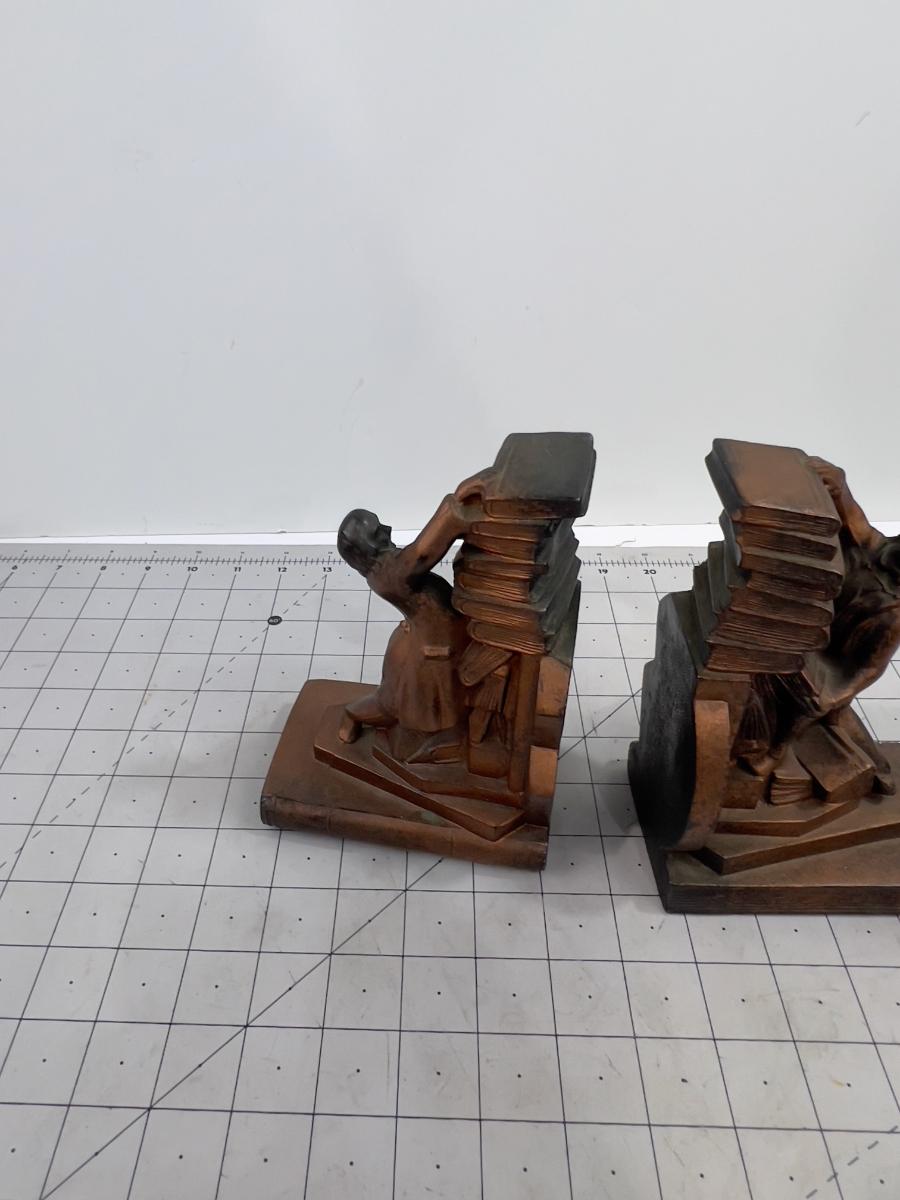 Book Ends Set. Bronze Color, 1940's Era Colonial Man Stacking Books