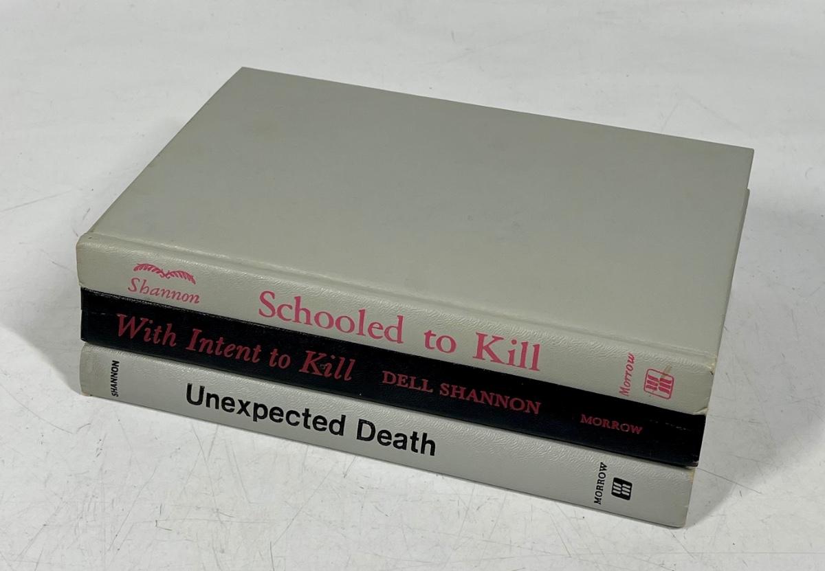 3 Dell Shannon Hardback Novels - Schooled to Kill, With Intent ti Kill, Unexpected Death - Book Lot #3