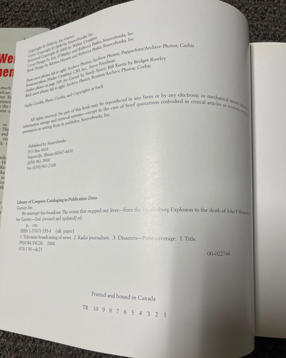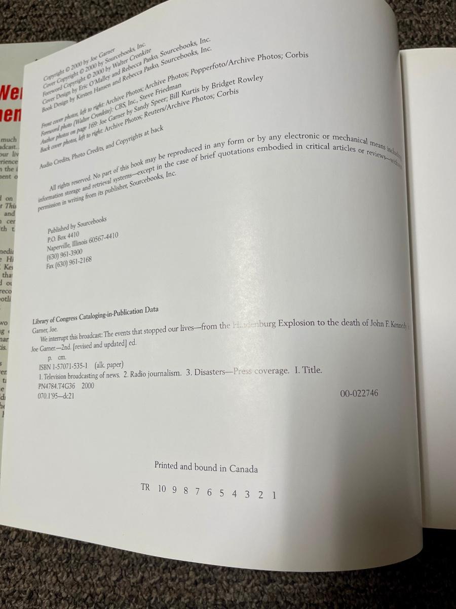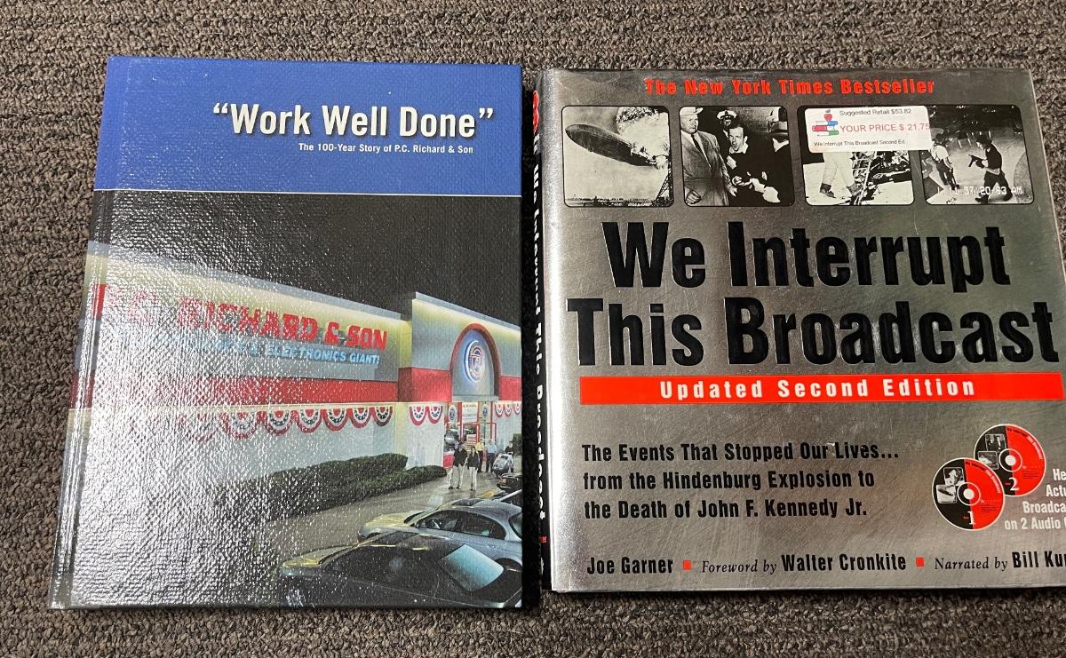 Titles: "We Interrupt This Broadcast" reviewing breaking-news stories with 2 audio CDs so you can actually her many of the history-making reports, and "Work Well Done", the 100-year history of the P.C Richard and Son, the largest family-owned appliance, TV, electronics and mattress store chain in the US - founded in 1909 in Long Island, New York. In good condition