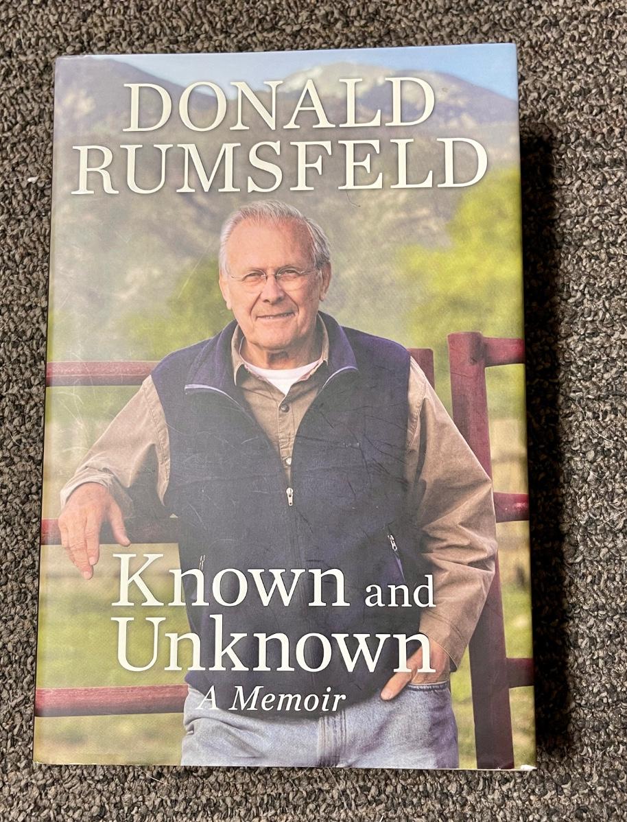 Life story of Donald Rumsfeld: Navy Captain & pilot, 4-term congressman, White House Chief of Staff, Secretary of Defense, US NATO Representative, and other positions. In good condition.