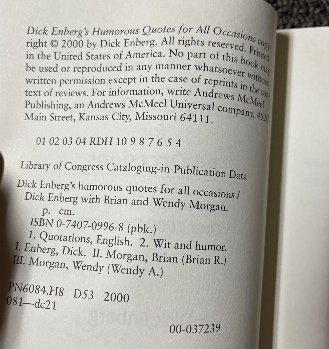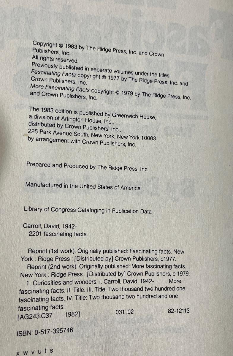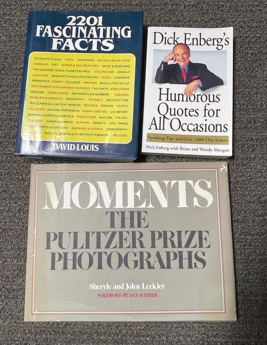 Titles include: Dick Enberg's Humorous Quotes for All Occasions, Moments - Pulitzer Prize Photographs, and 2201 Fascinating Facts. All in good condition.