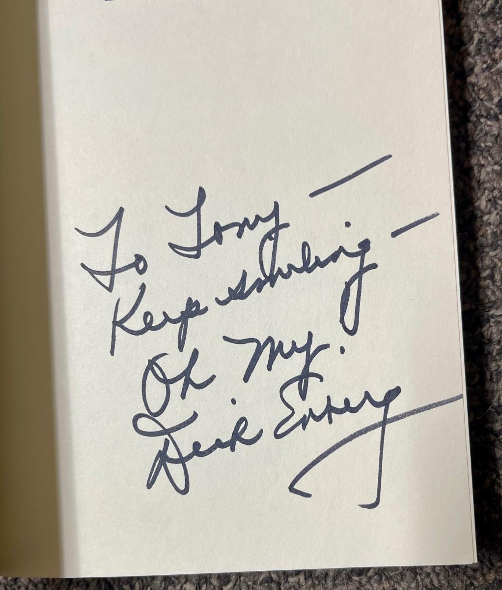 Book Lot: Dick Enberg, Pulitzer Photographs, and Fascinating Facts Dick Enberg autographed his book