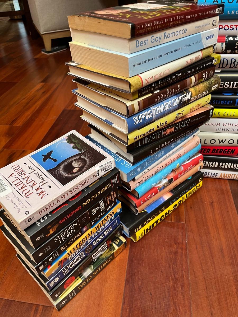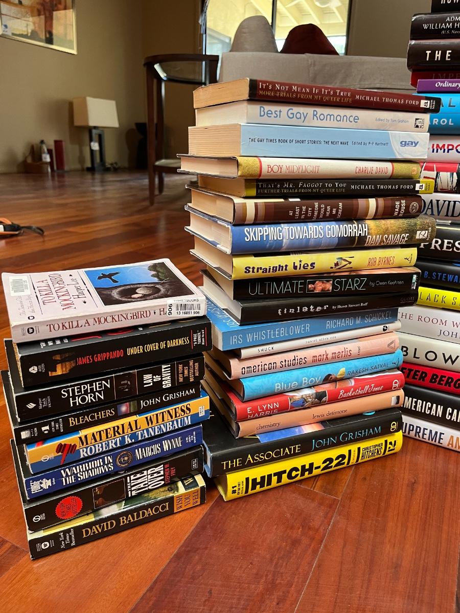 Book Lot “” 60+ books “” varying in genres , LGBTQ books, political books, law related books. Several more not pictured. Great condition.