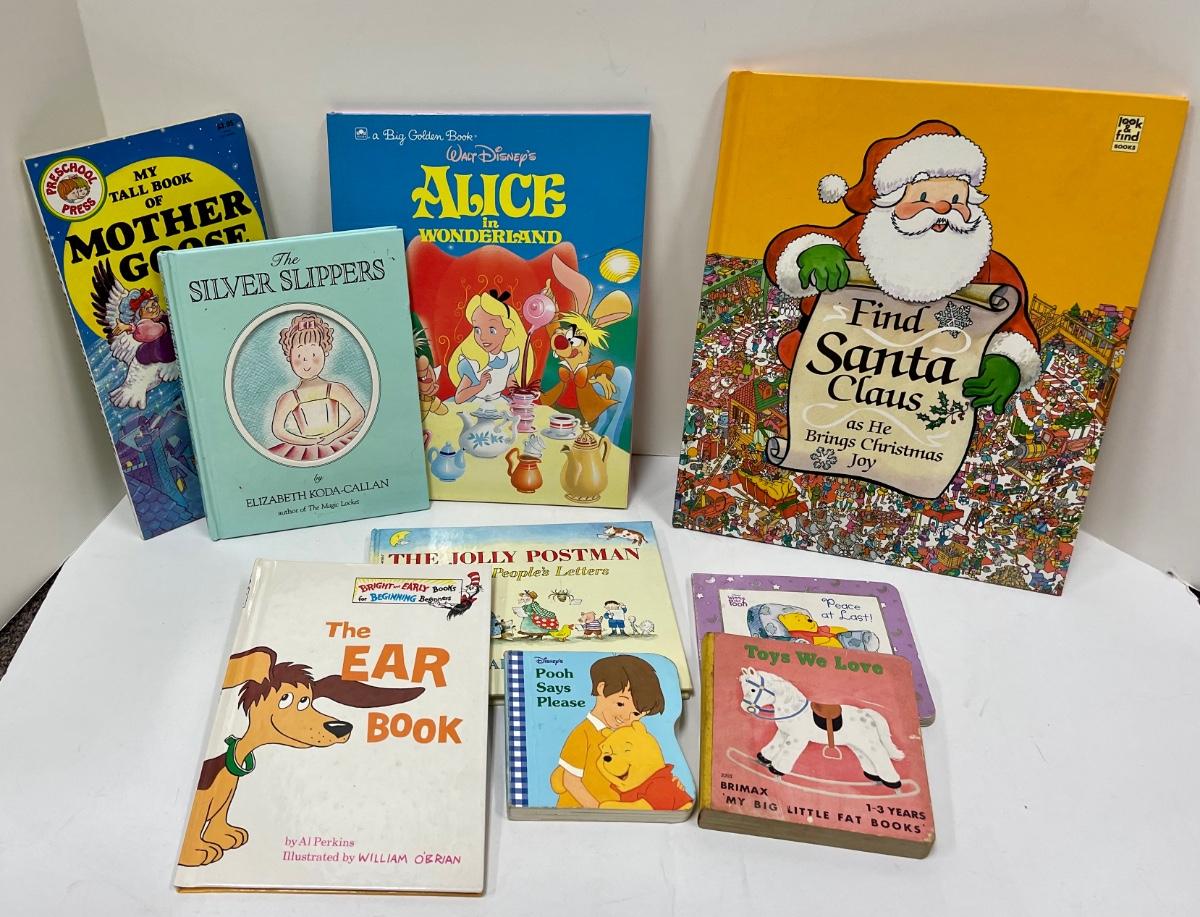 Book Lot - Young Children's Story Books - Alice in Wonderland, Mother Goose, The Ear Book, etc