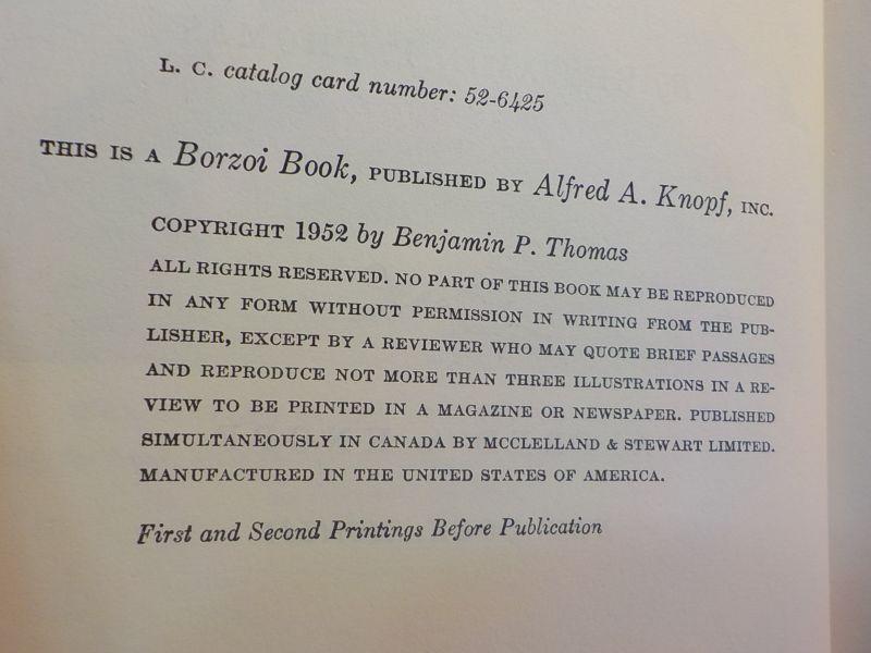 " Book of Abraham Lincoln by Benjamin Thomas. 1939.