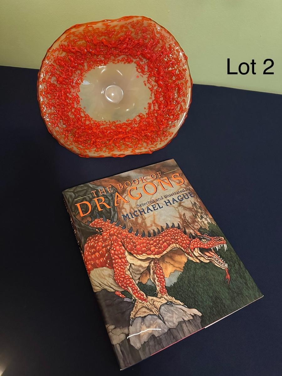 BOOK OF DRAGONS BLOWN GLASS ART BOWL