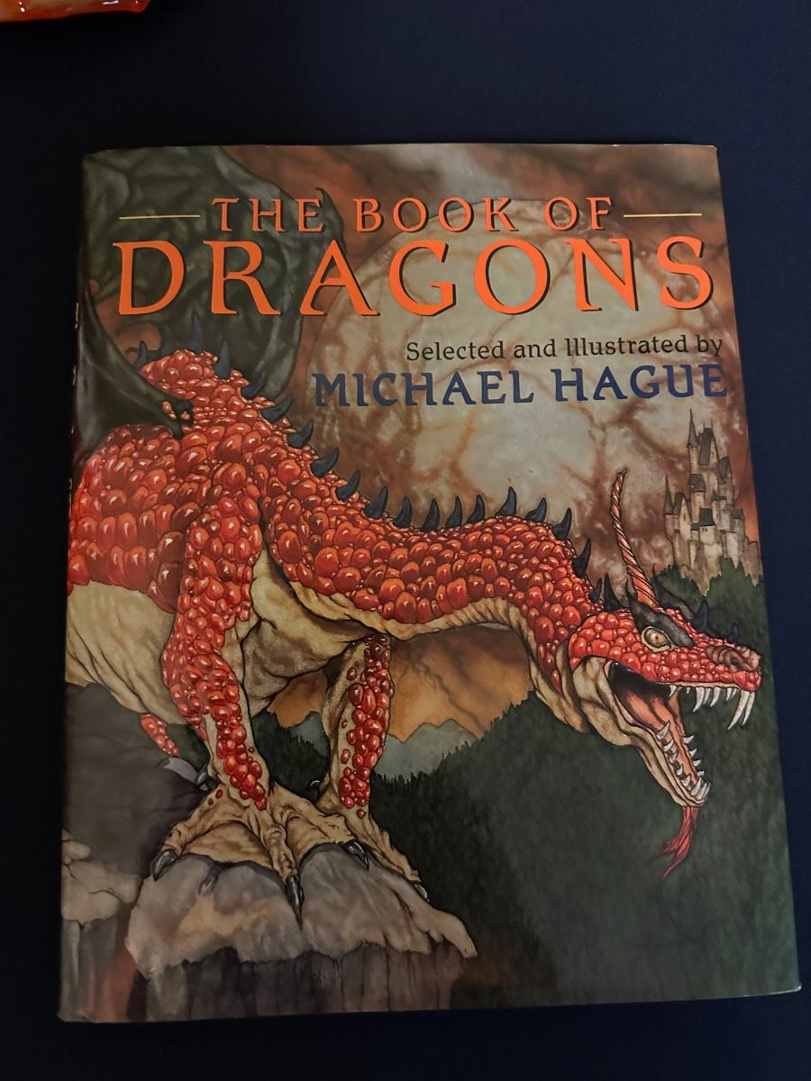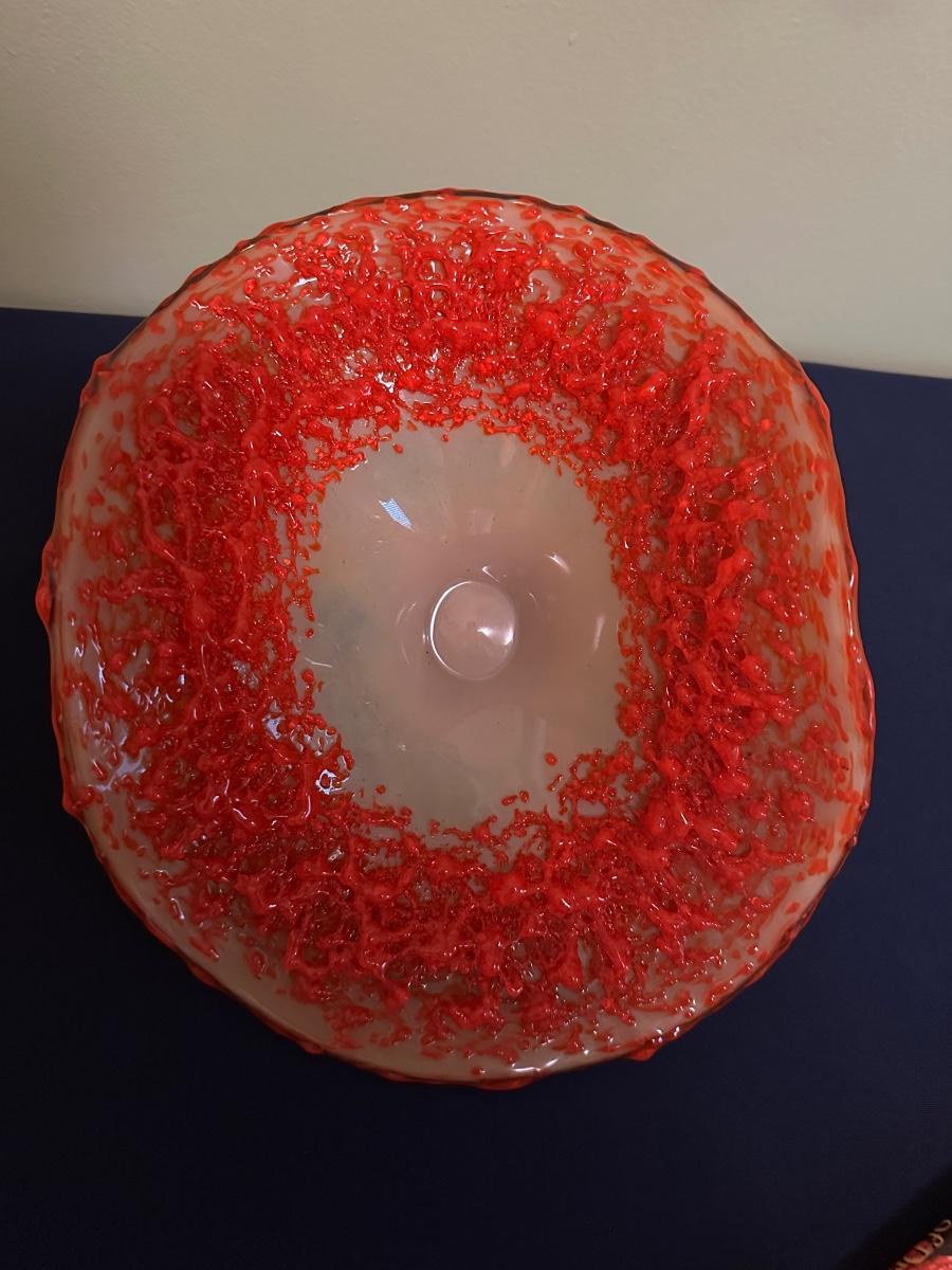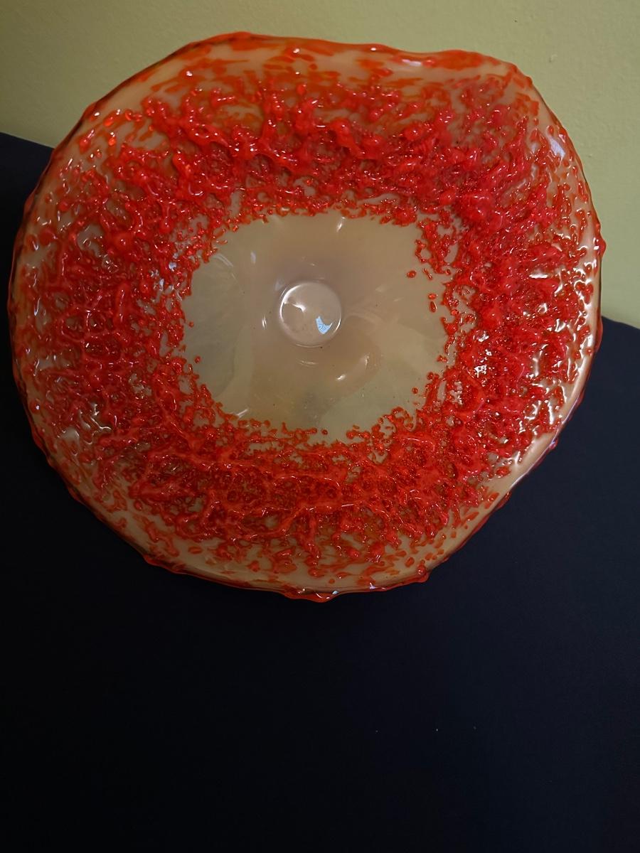 BOOK OF DRAGONS, MICHAEL HAGUE, BEATUFUL ORANGE AND TAN BOWL ART GLASS DECORATOR BOWL