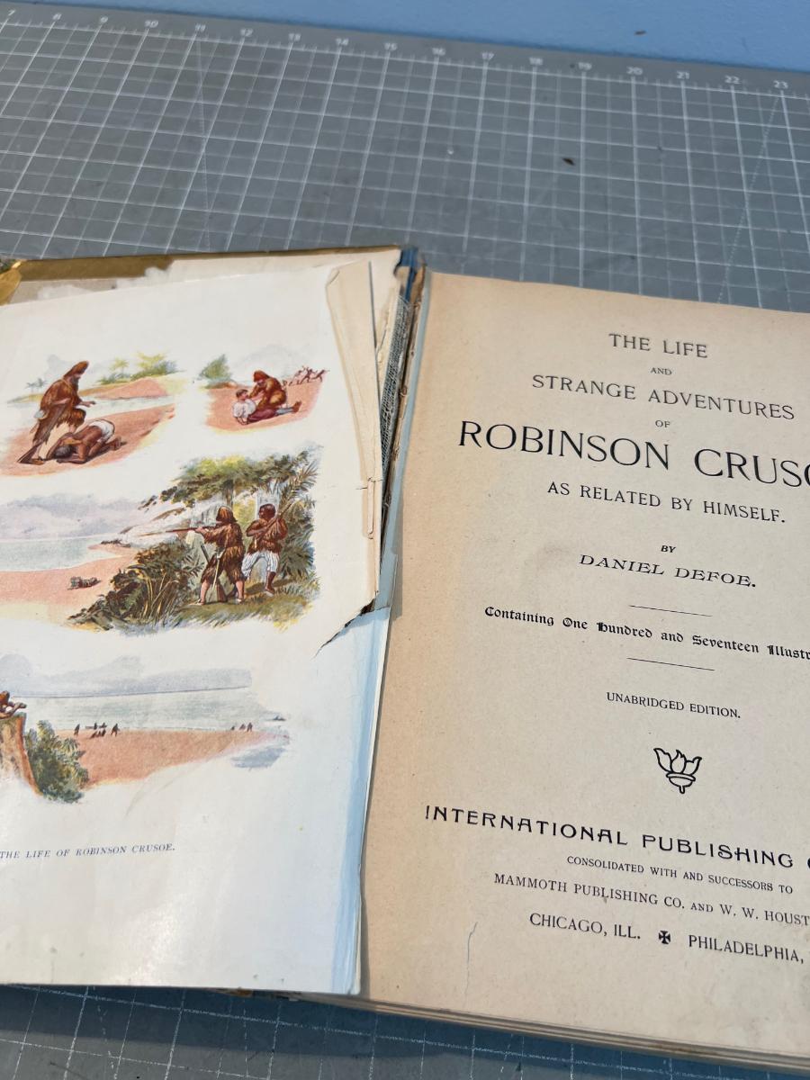 Book OLD!!! Late 1800's Page Missing ROBINSON Crusoe